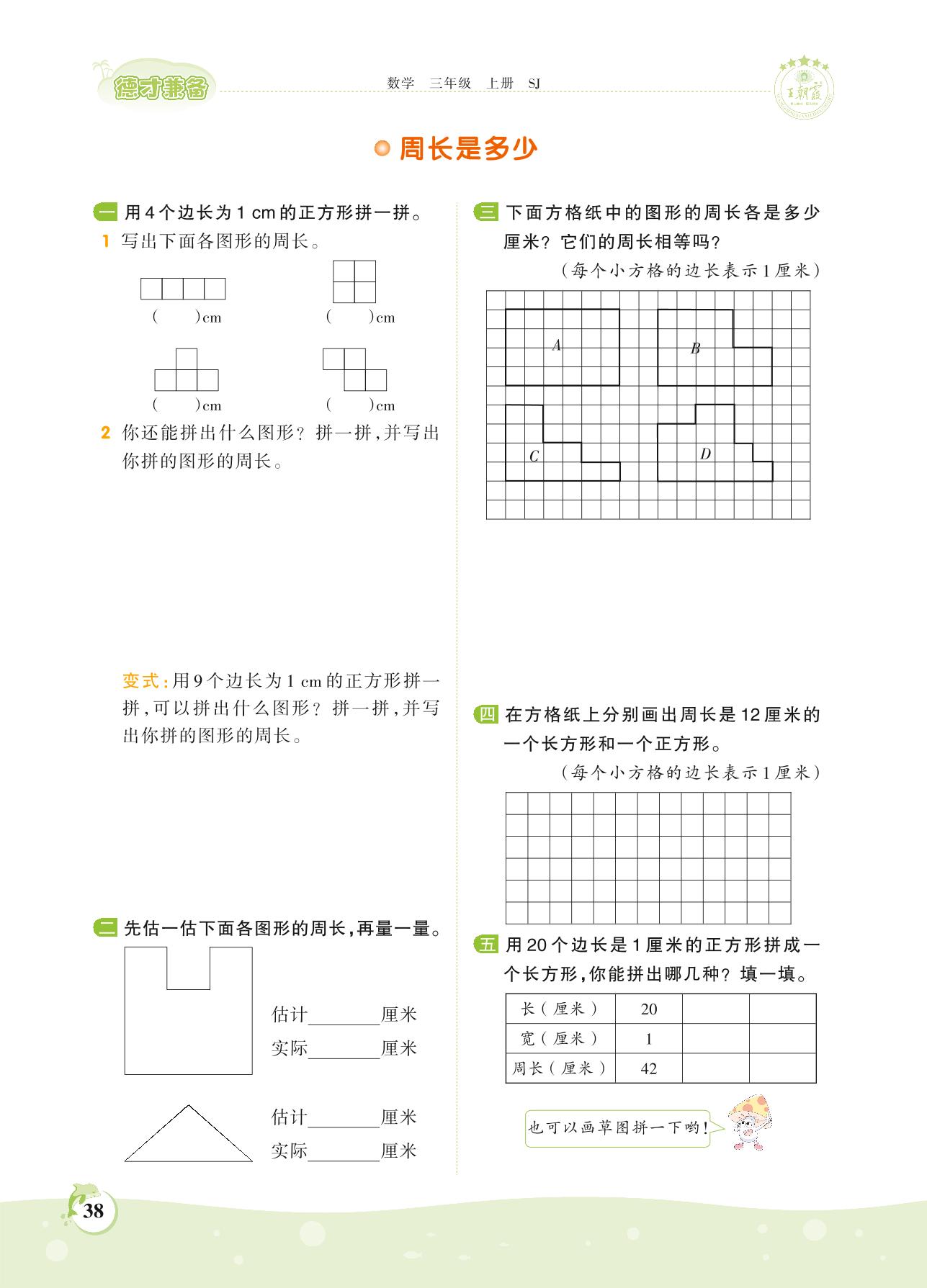 2021上册三年级数学苏教版 第三单元——周长是多少