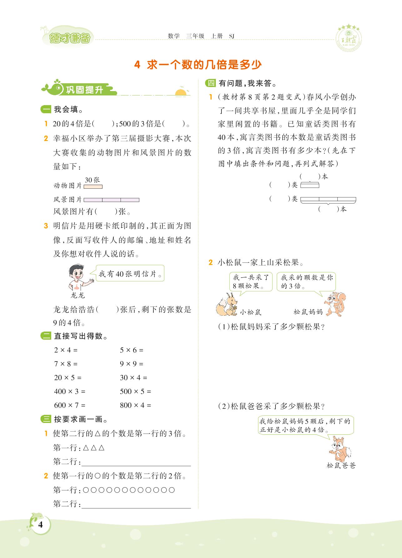 2021上册三年级数学苏教版 第一单元——4 求一个数的几倍是多少