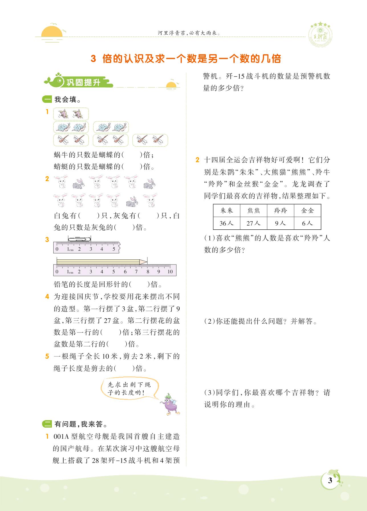 2021上册三年级数学苏教版 第一单元——3 倍的认识及求一个数是另一个数的几倍