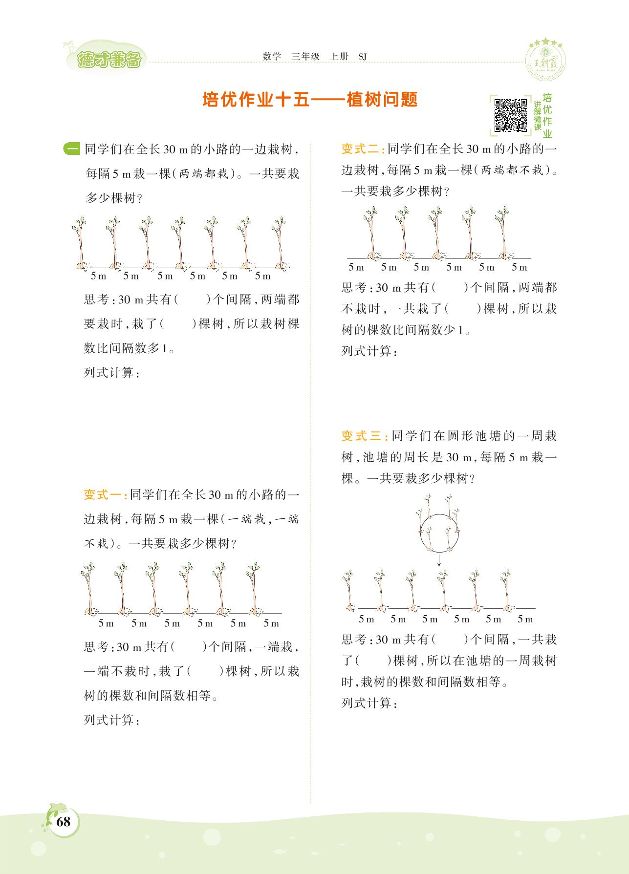 2021上册三年级数学苏教版 第五单元——培优作业十五 植树问题