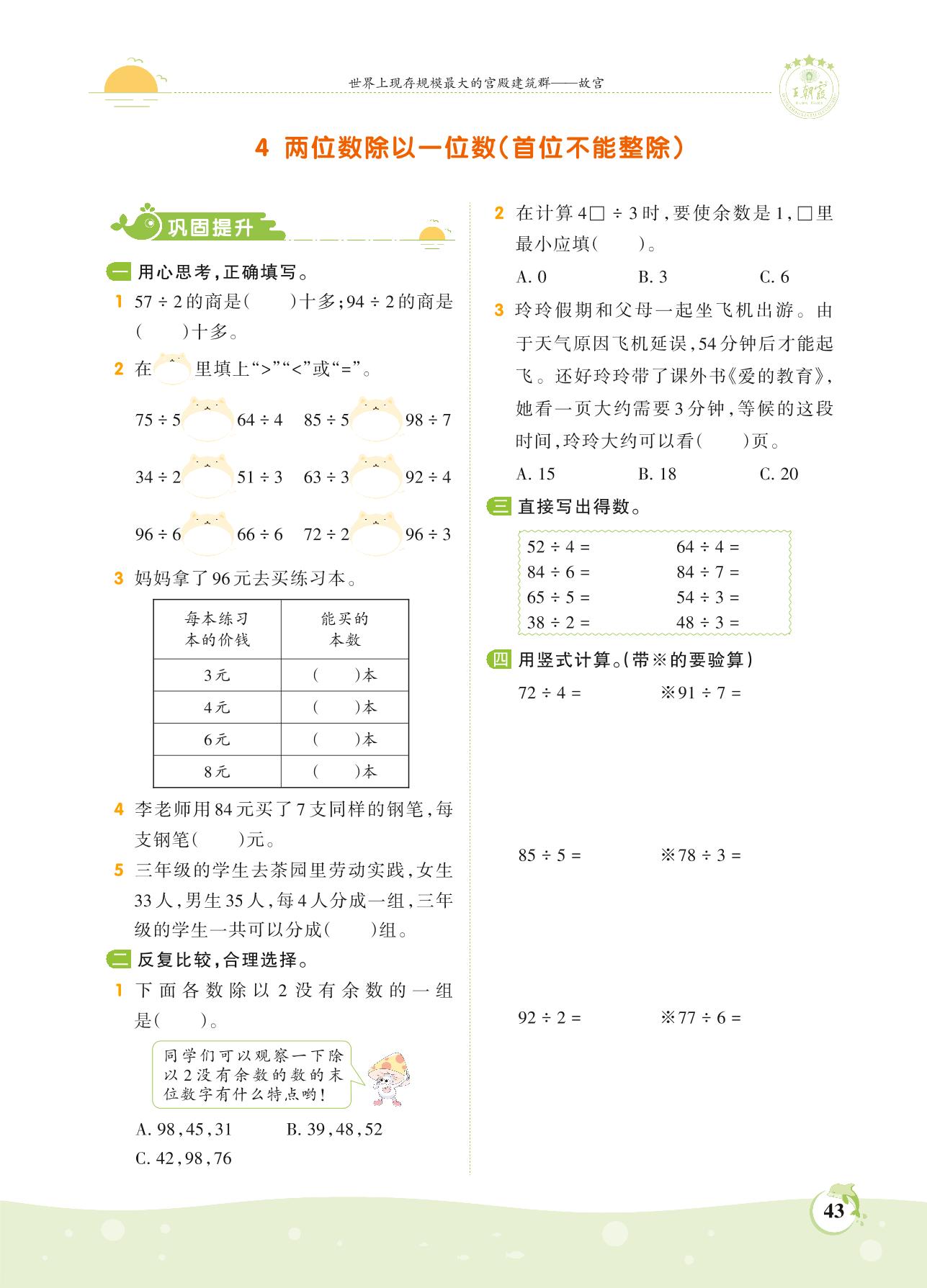 2021上册三年级数学苏教版 第四单元——4 两位数除以一位数(首位不能整除)