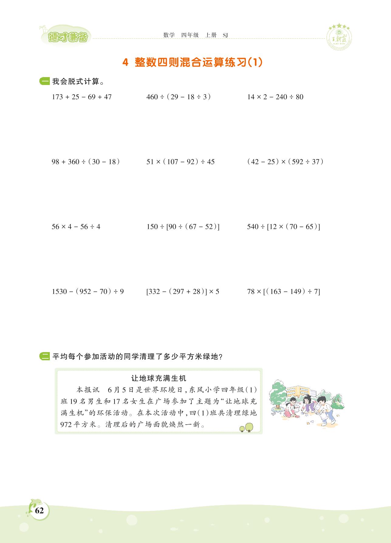 2021上册四年级数学苏教版 第七单元——4 整数四则混合运算练习(1)