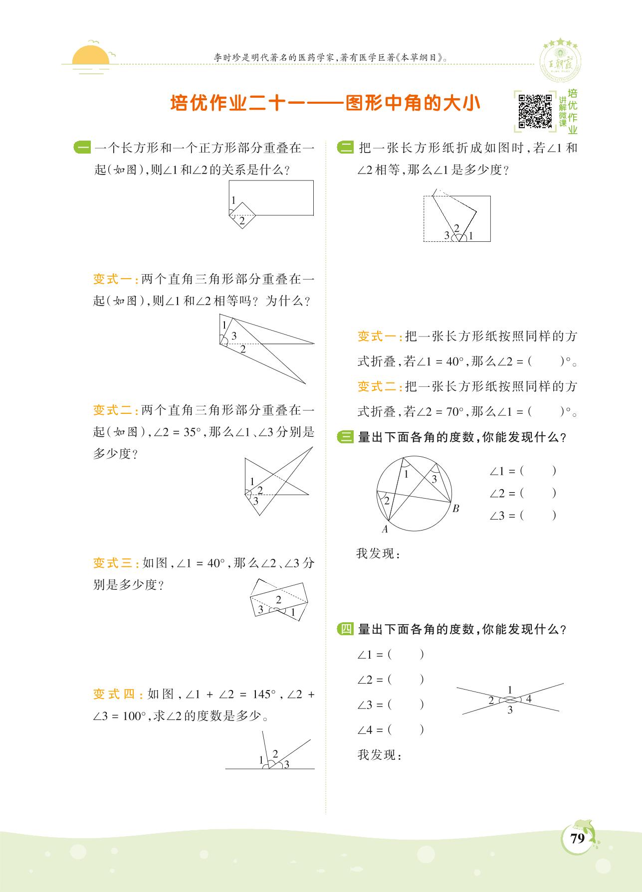 2021上册四年级数学苏教版 第八单元——培优作业二十一 图形中角的大小