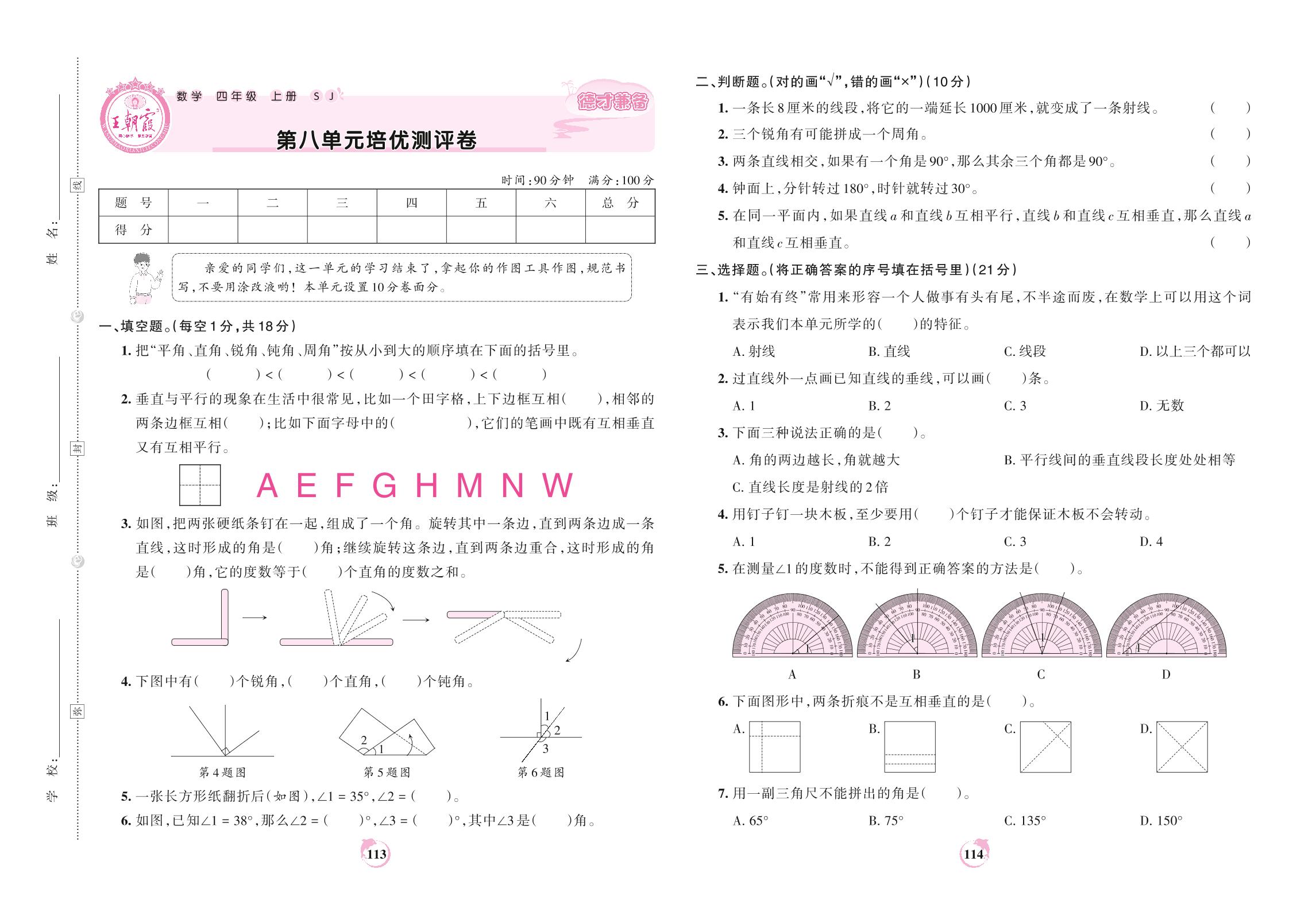 四年级数学苏教版上册单元卷