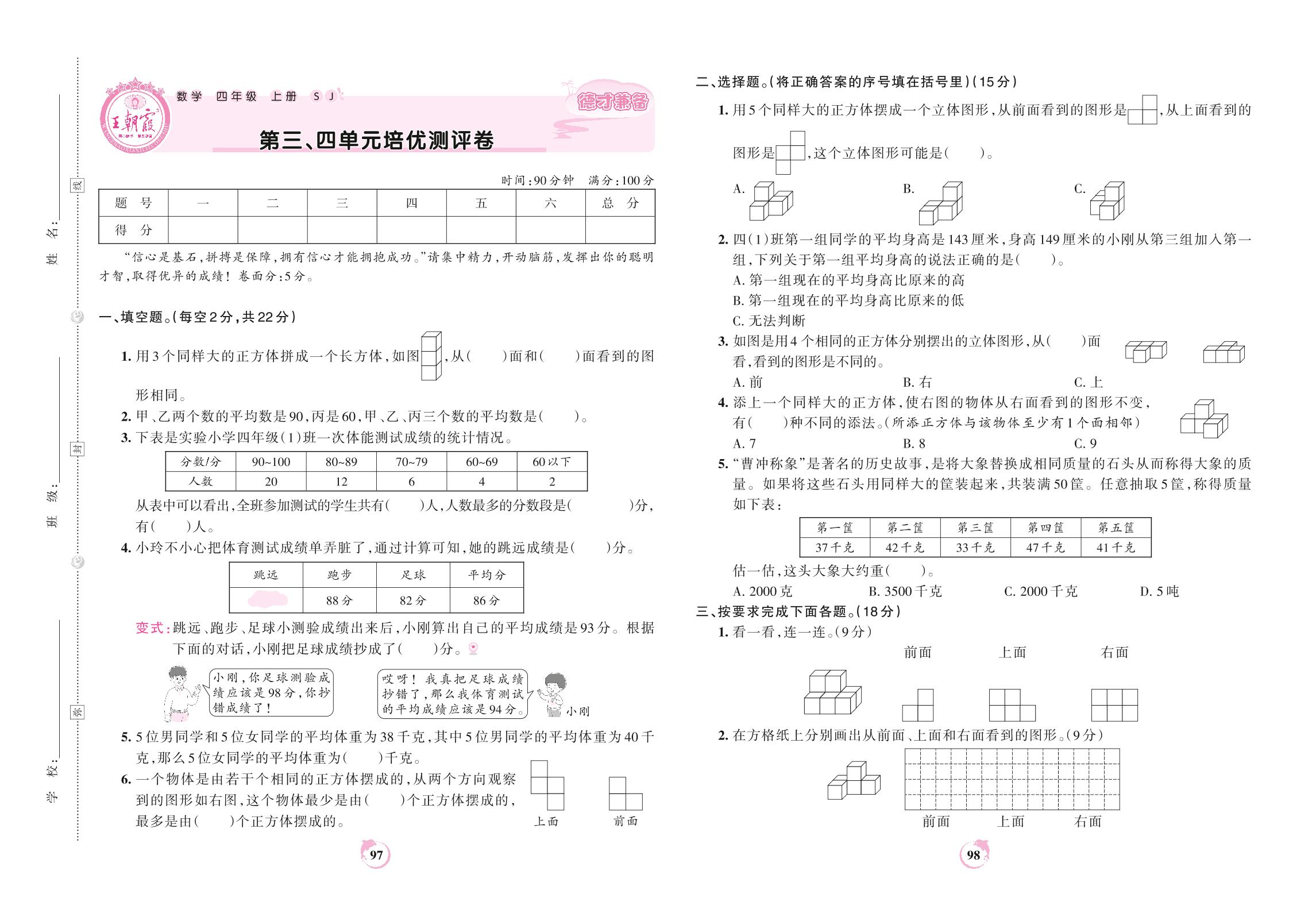 2021上册四年级数学苏教版 第三、四单元培优测评卷