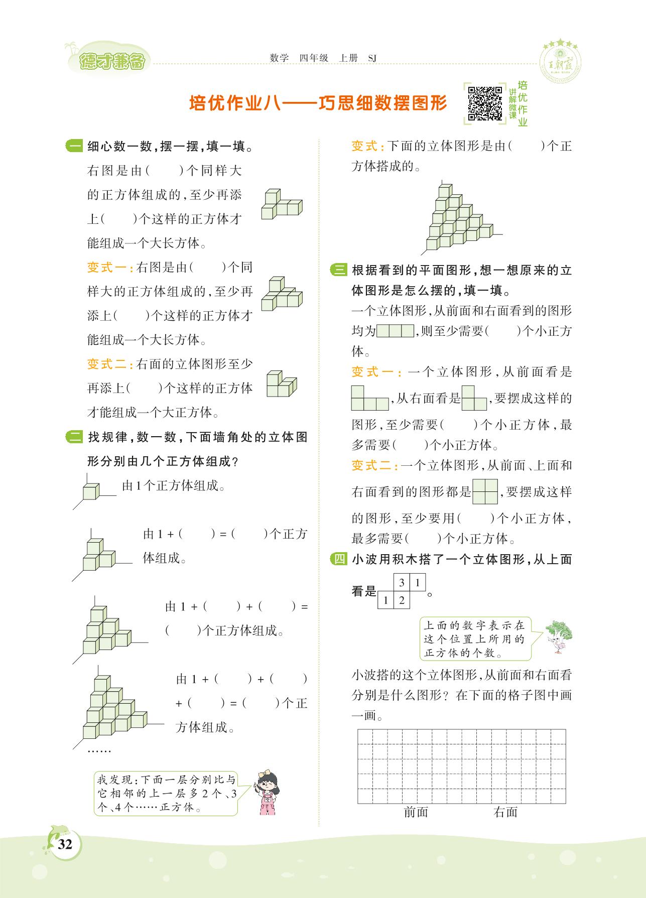 2021上册四年级数学苏教版 第三单元——培优作业八 巧思细数摆图形