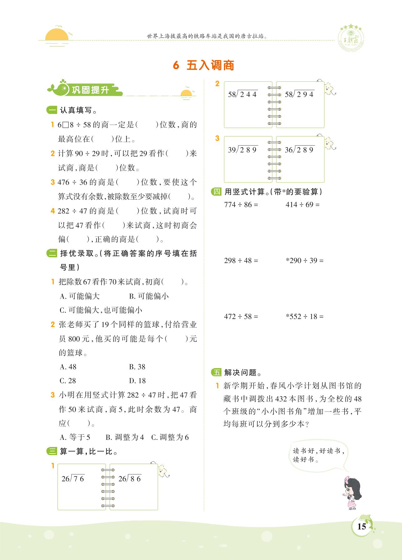 2021上册四年级数学苏教版 第二单元——6 五入调商