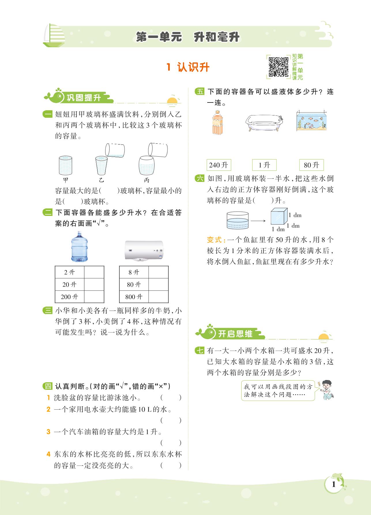 2021上册四年级数学苏教版 第一单元——1 认识升