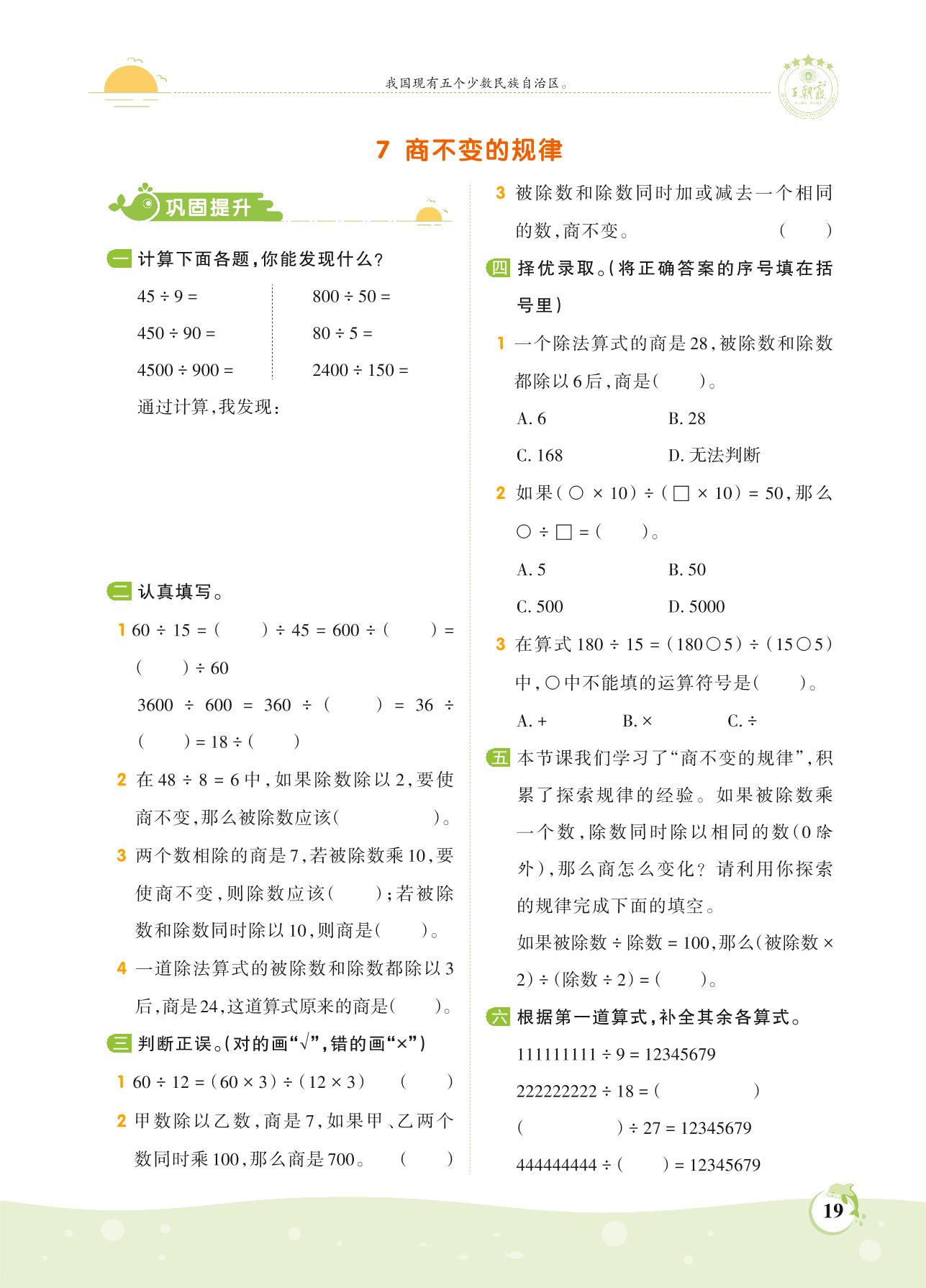 2021上册四年级数学苏教版 第二单元——7 商不变的规律