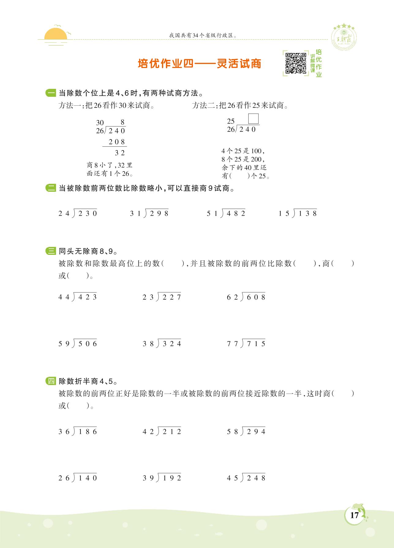 2021上册四年级数学苏教版 第二单元——培优作业四 灵活试商