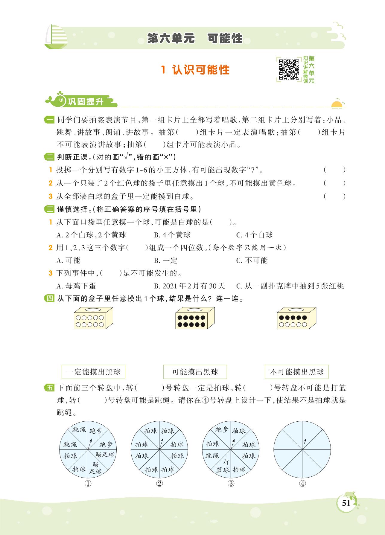 2021上册四年级数学苏教版 第六单元——1 认识可能性