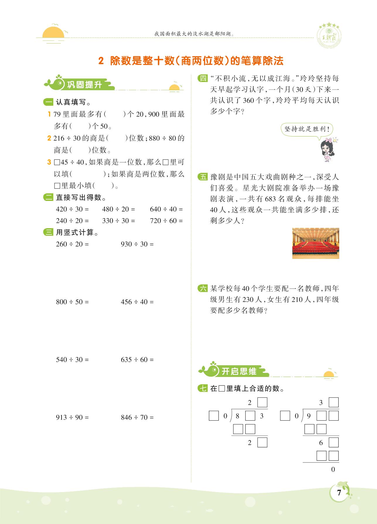 2021上册四年级数学苏教版 第二单元——2 除数是整十数(商两位数)的笔算除法