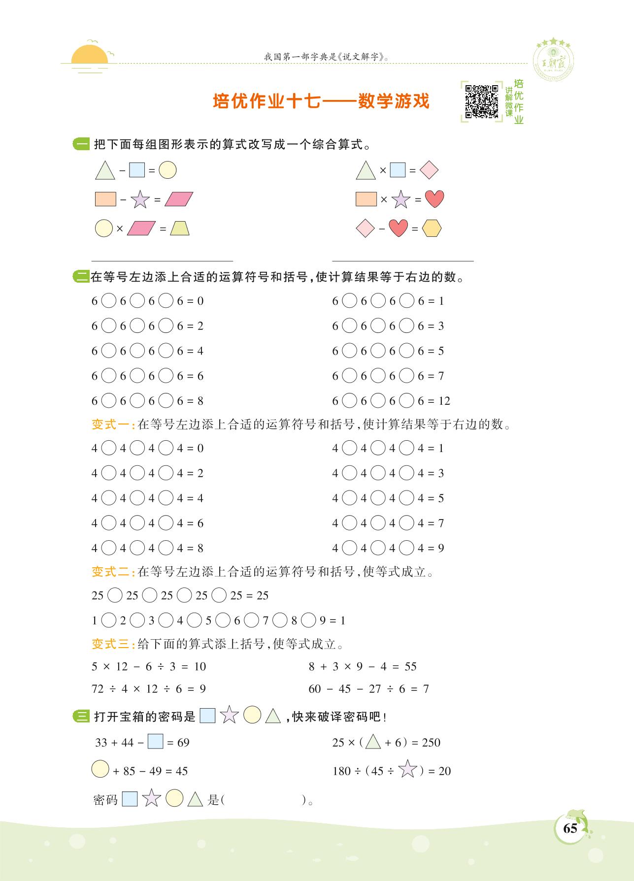 2021上册四年级数学苏教版 第七单元——培优作业十七 数学游戏