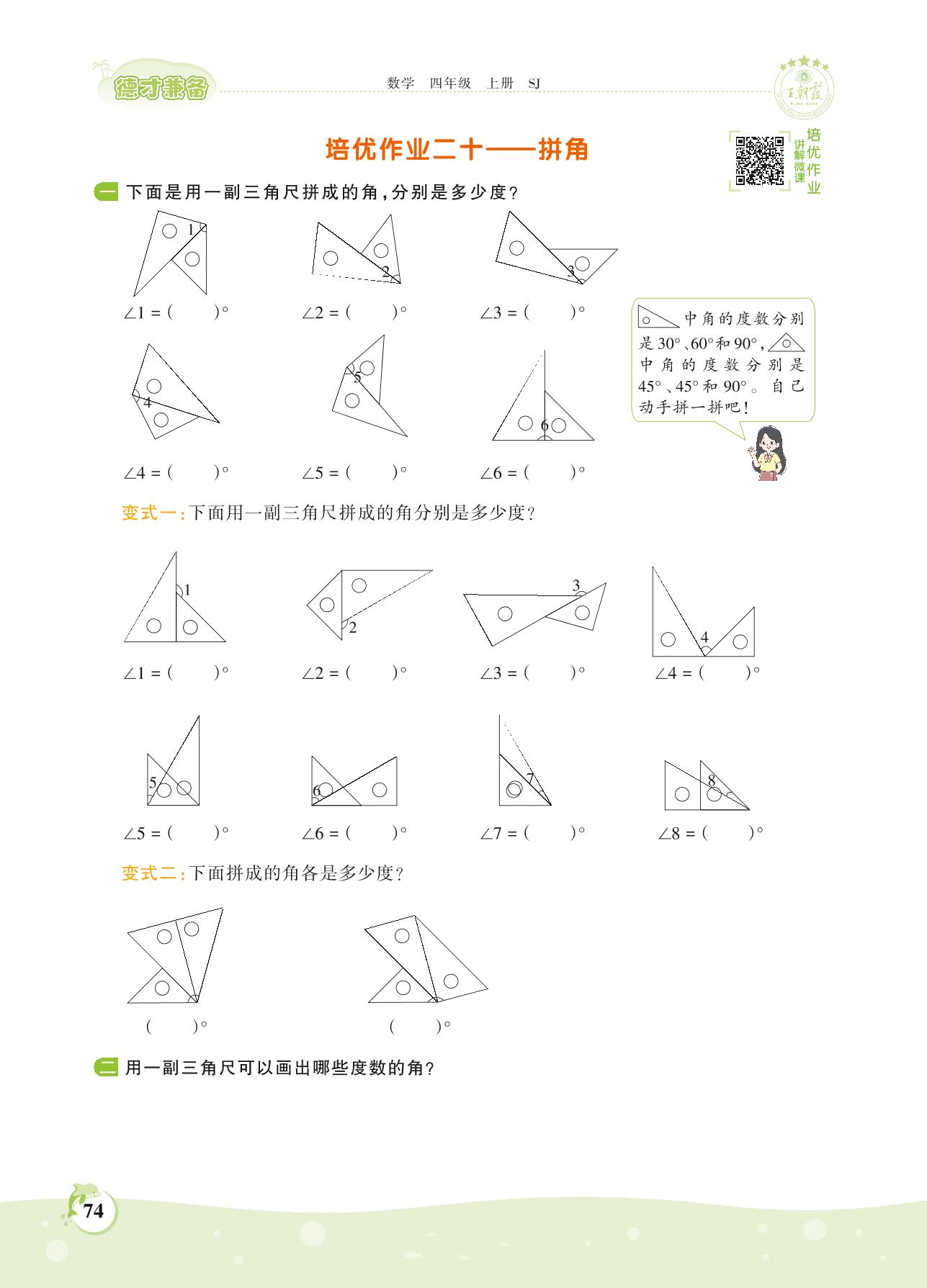 2021上册四年级数学苏教版 第八单元——培优作业二十 拼角