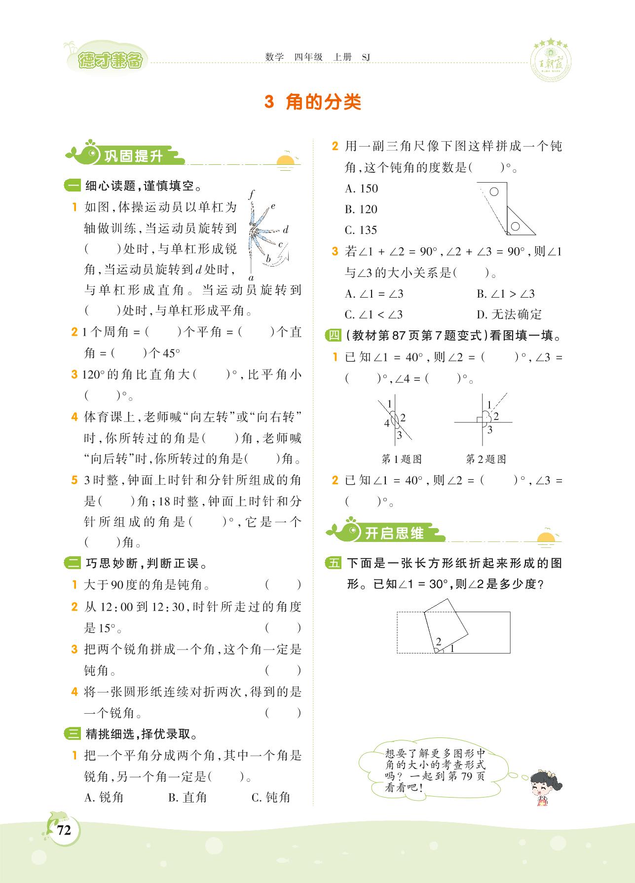 2021上册四年级数学苏教版 第八单元——3 角的分类