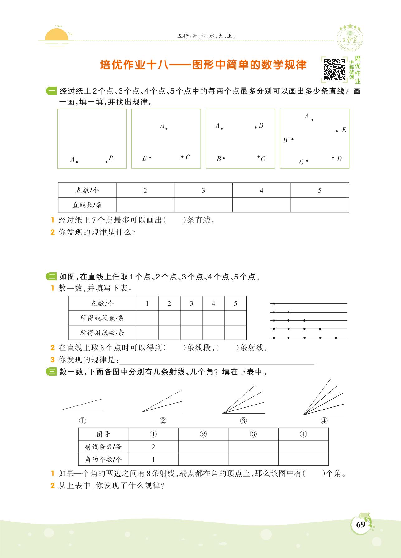 2021上册四年级数学苏教版 第八单元——培优作业十八 图形中简单的数学规律