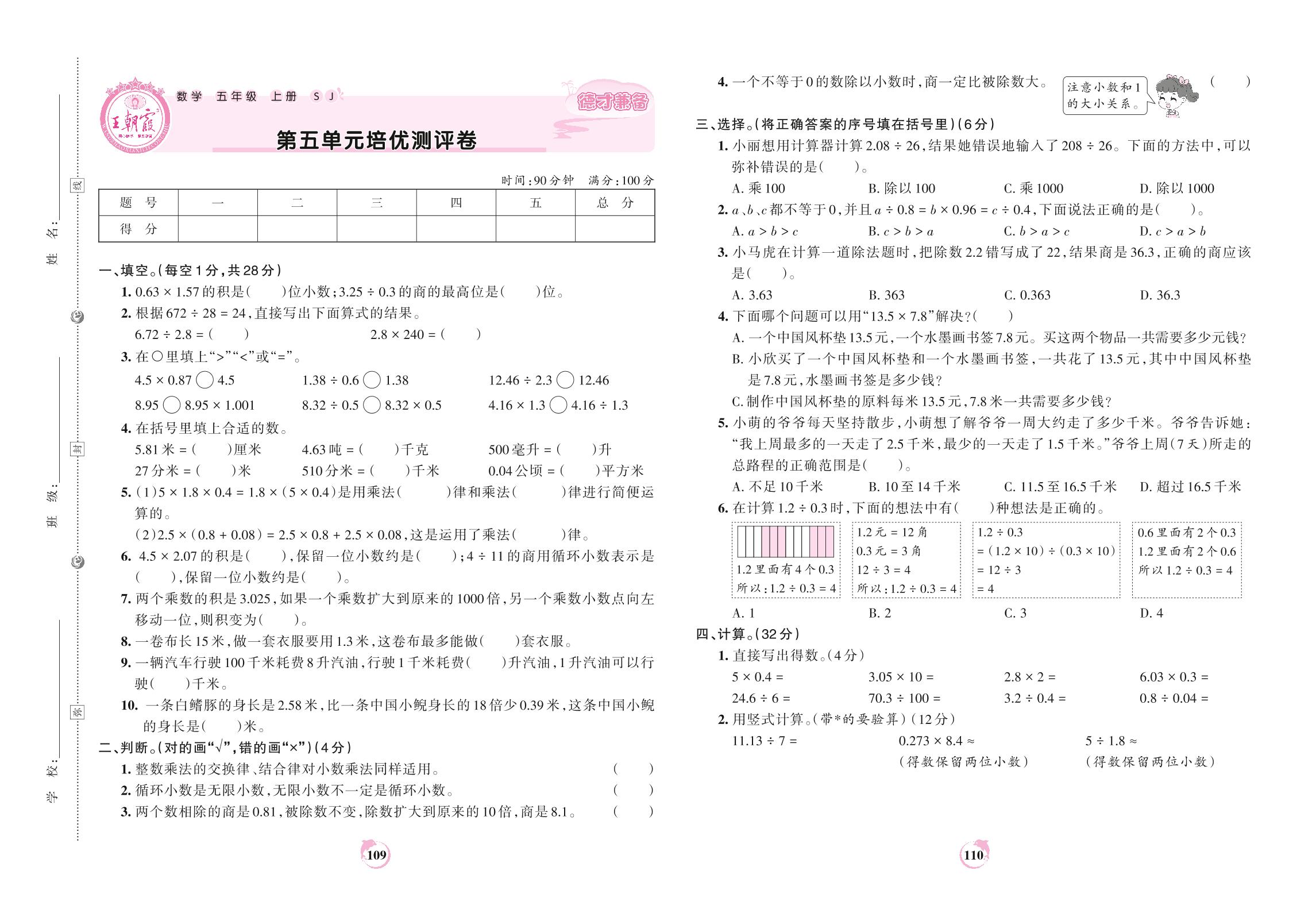 2021上册五年级数学苏教版 第五单元培优测评卷