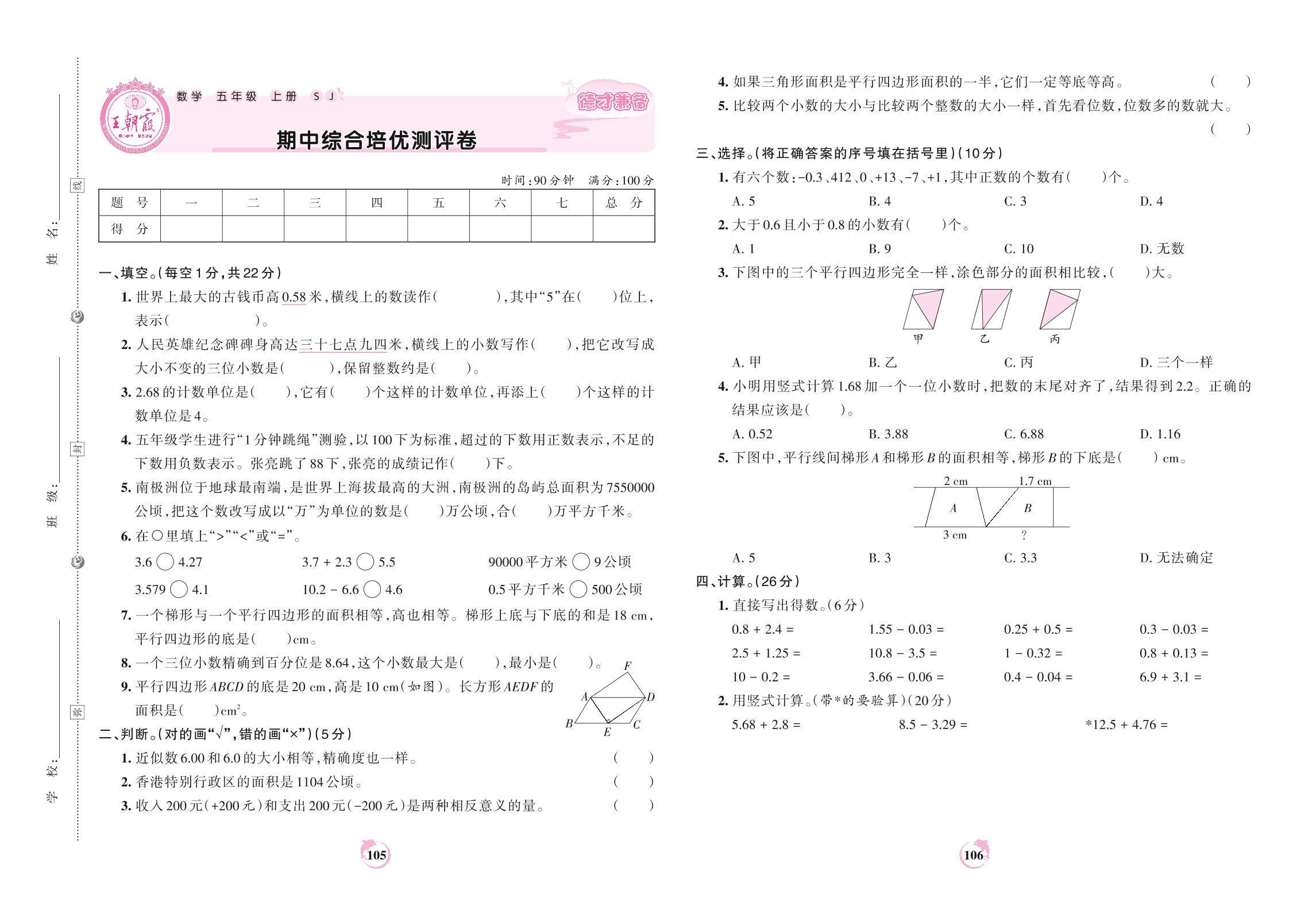 2021上册五年级数学苏教版 期中综合培优测评卷