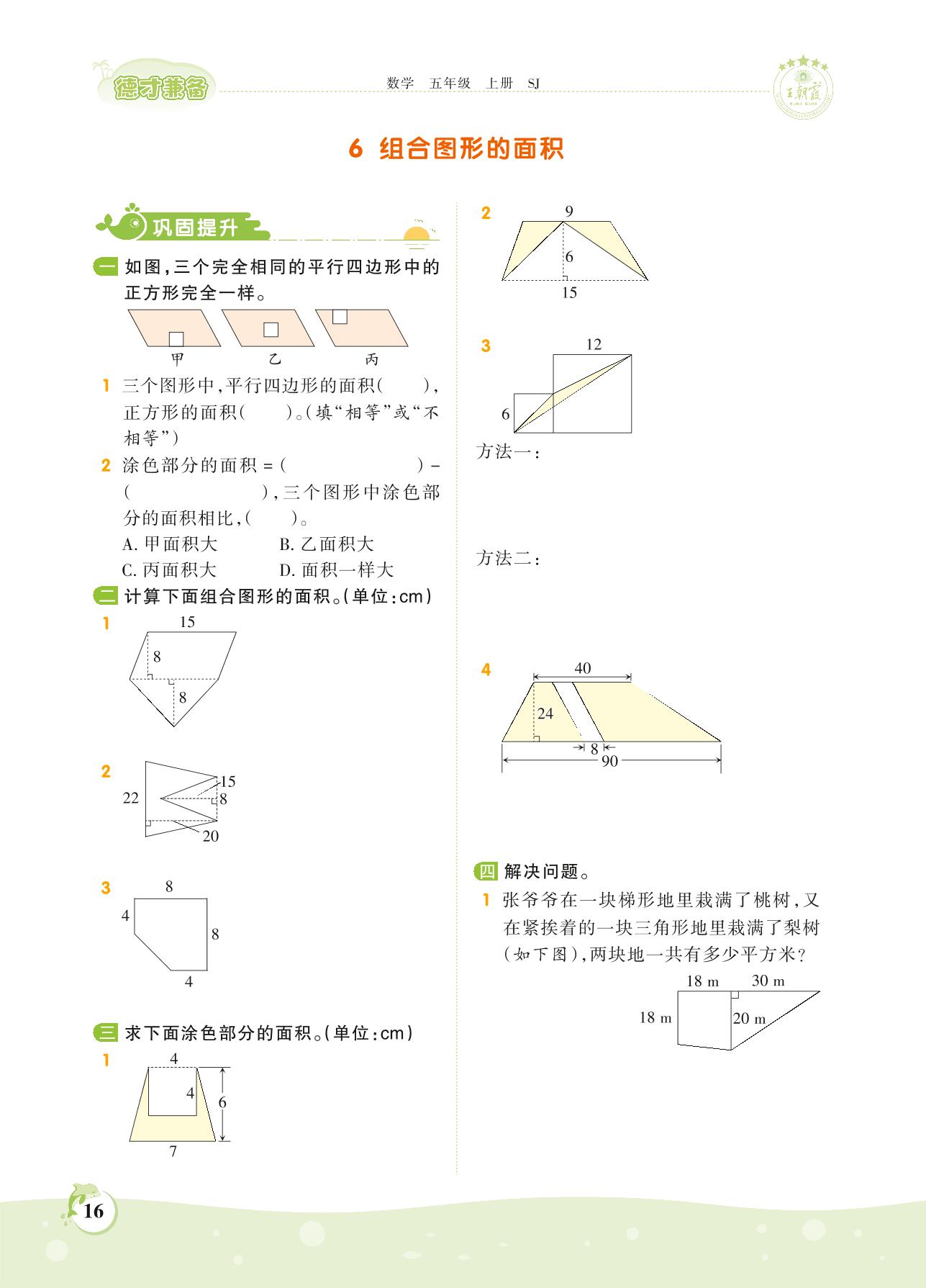 2021上册五年级数学苏教版 第二单元——6 组合图形的面积