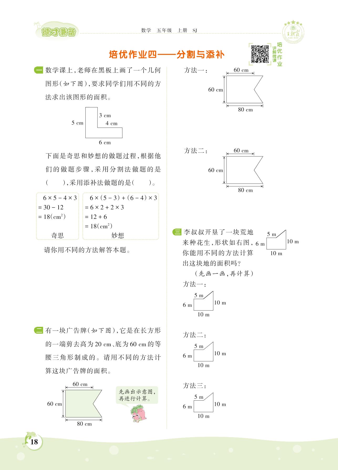 2021上册五年级数学苏教版 第二单元——培优作业四 分割与添补