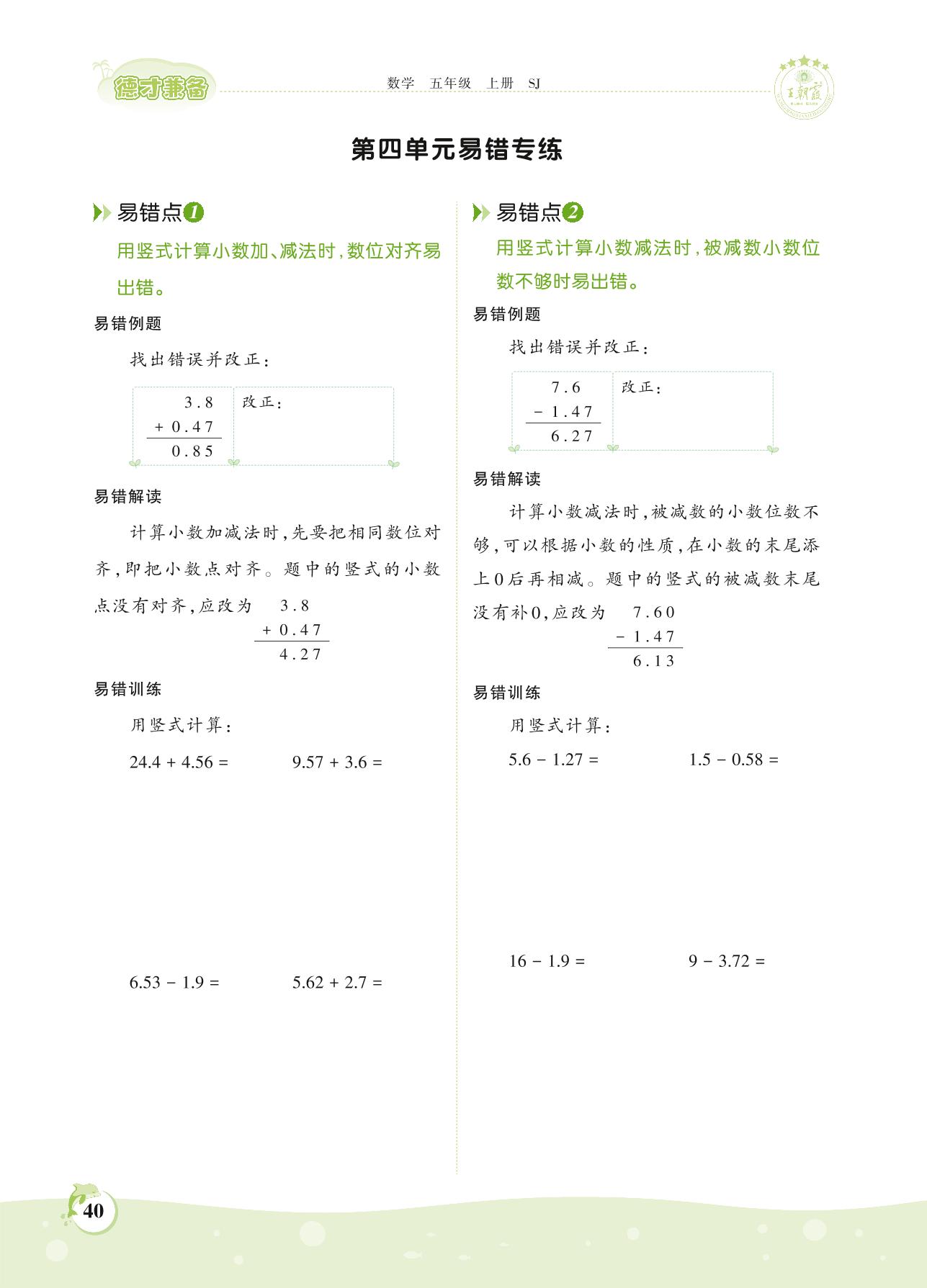 2021上册五年级数学苏教版 第四单元易错专练
