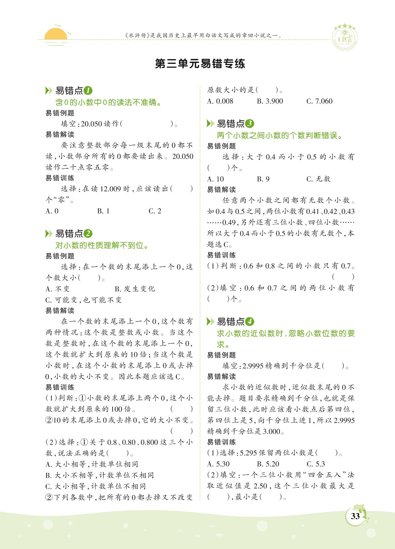2021上册五年级数学苏教版 第三单元易错专练