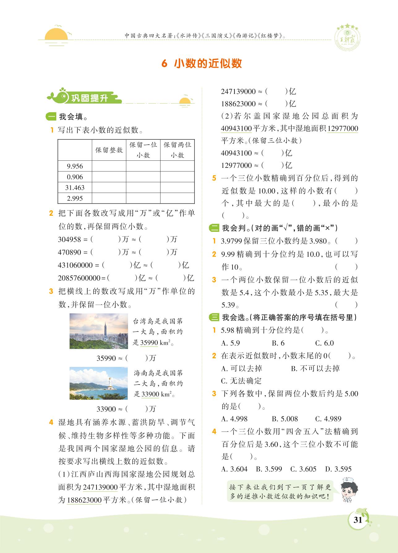 2021上册五年级数学苏教版 第三单元——6 小数的近似数