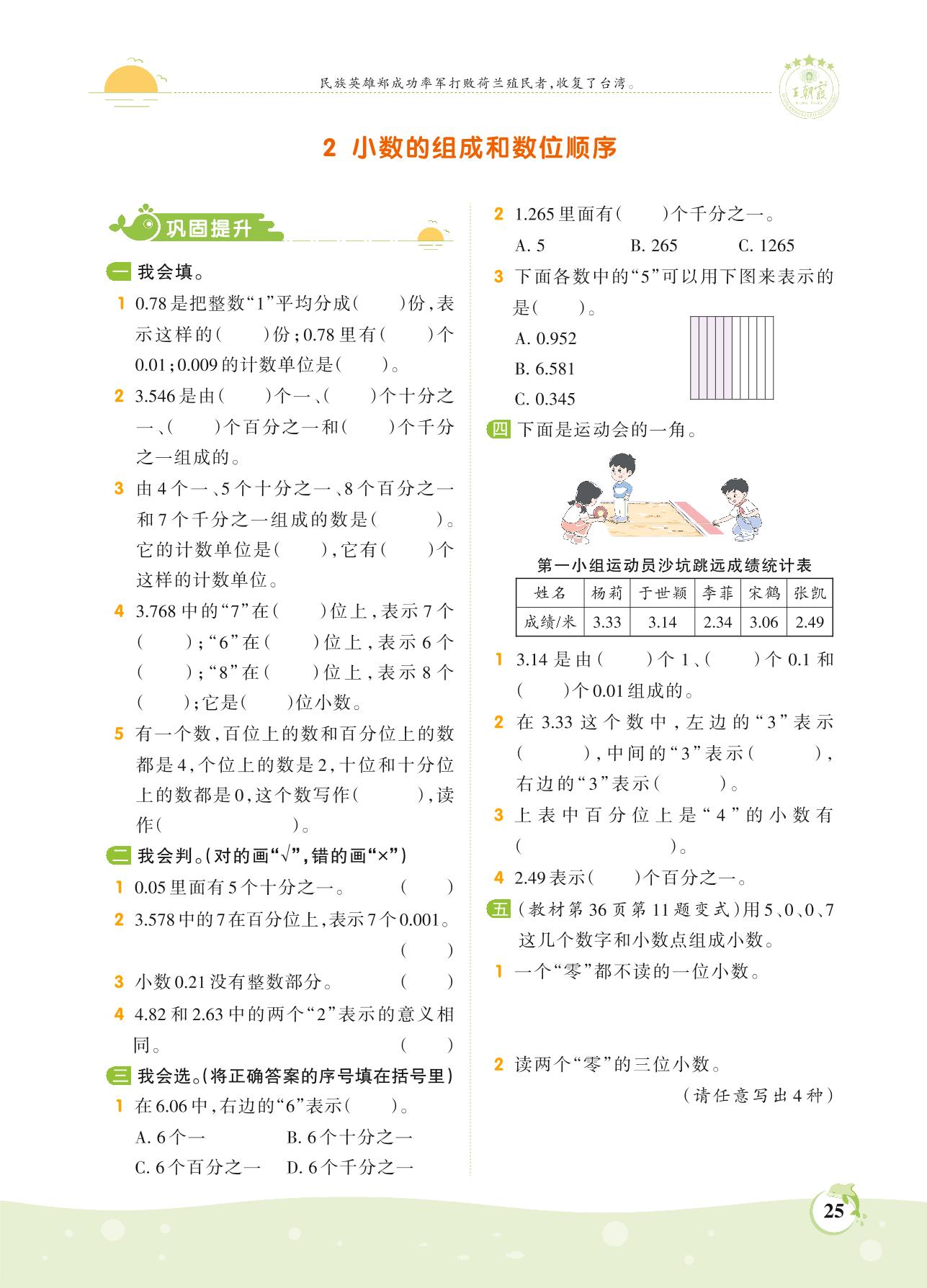 2021上册五年级数学苏教版 第三单元——2 小数的组成和数位顺序