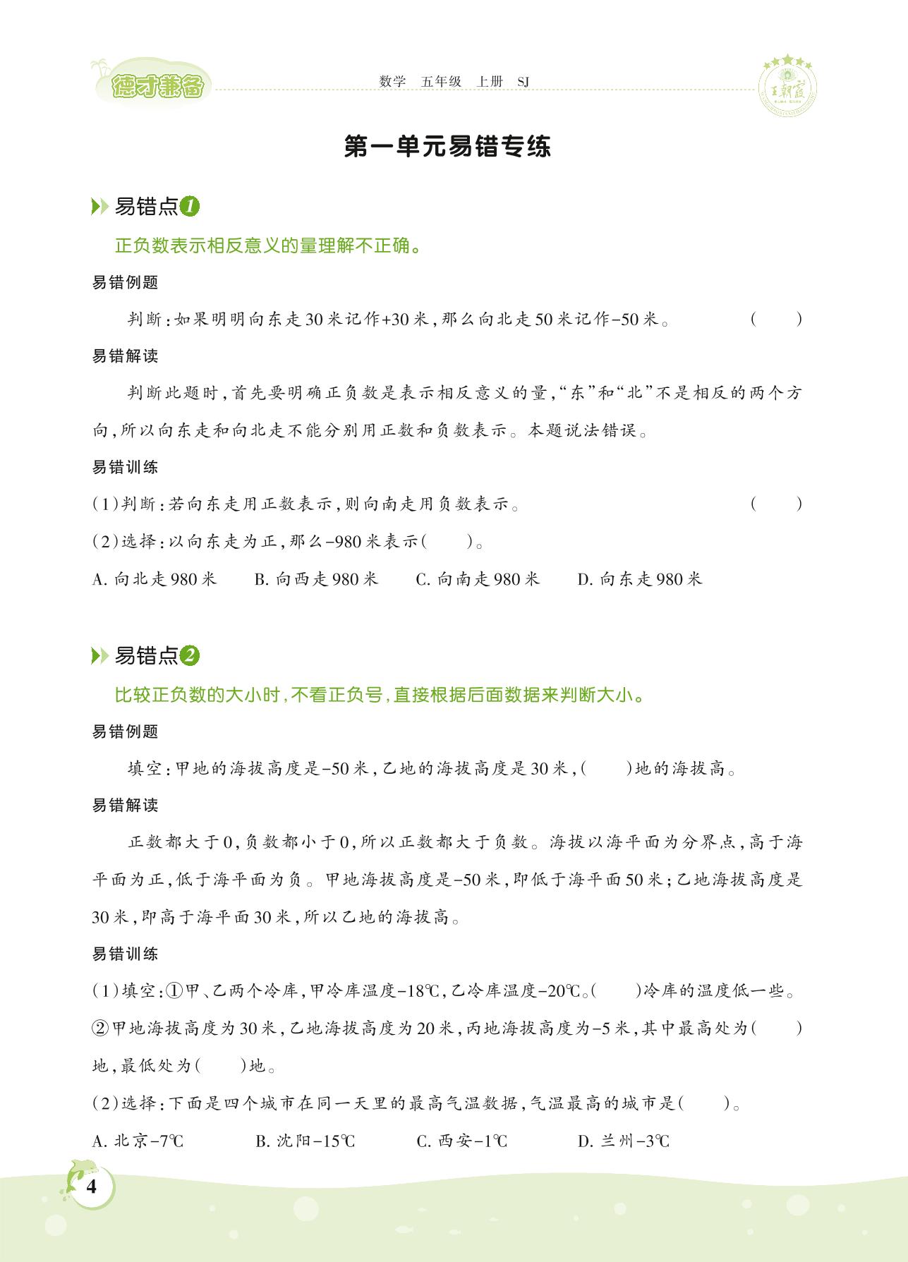 2021上册五年级数学苏教版 第一单元易错专练