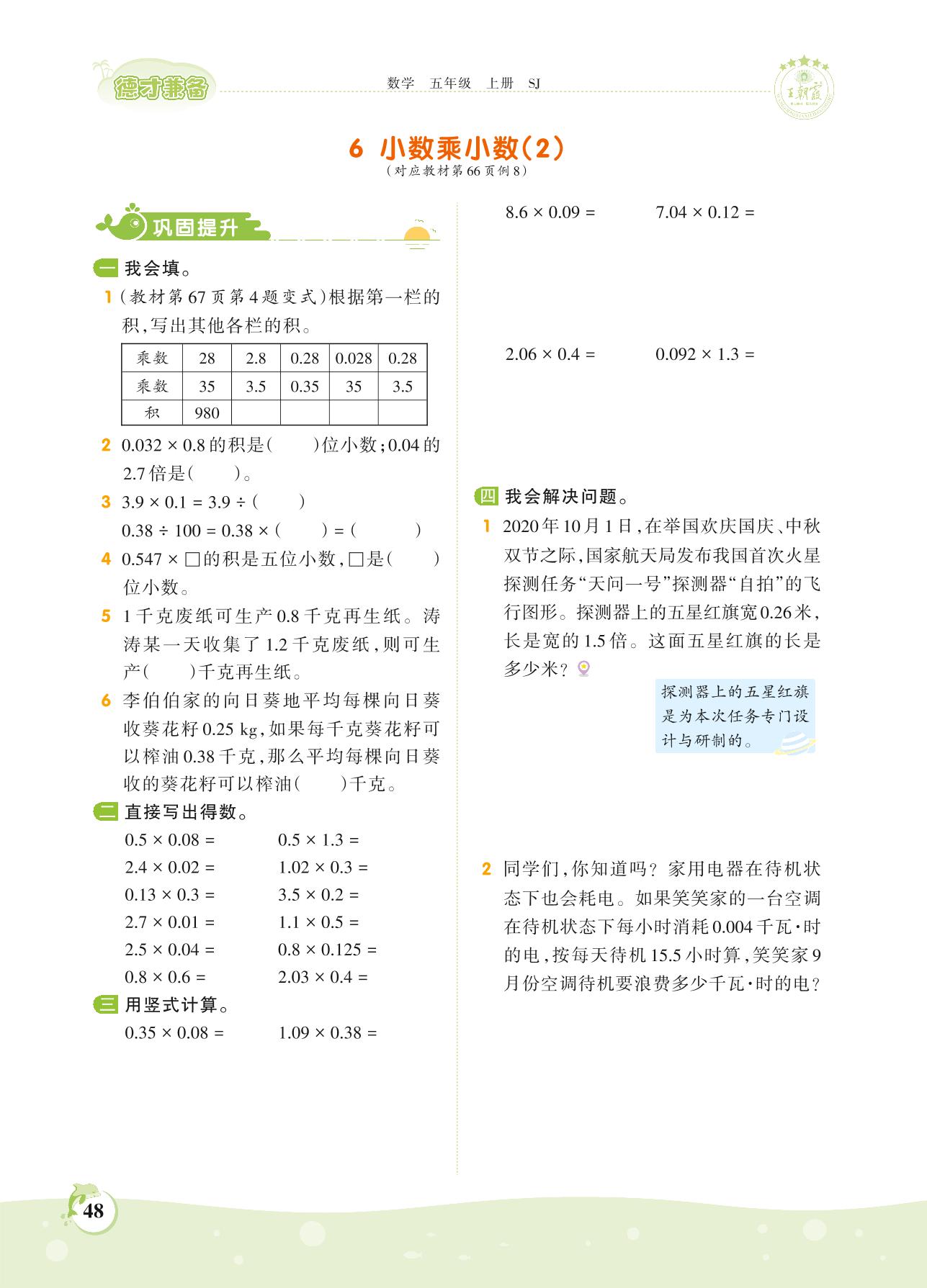 2021上册五年级数学苏教版 第五单元——6 小数乘小数(2)