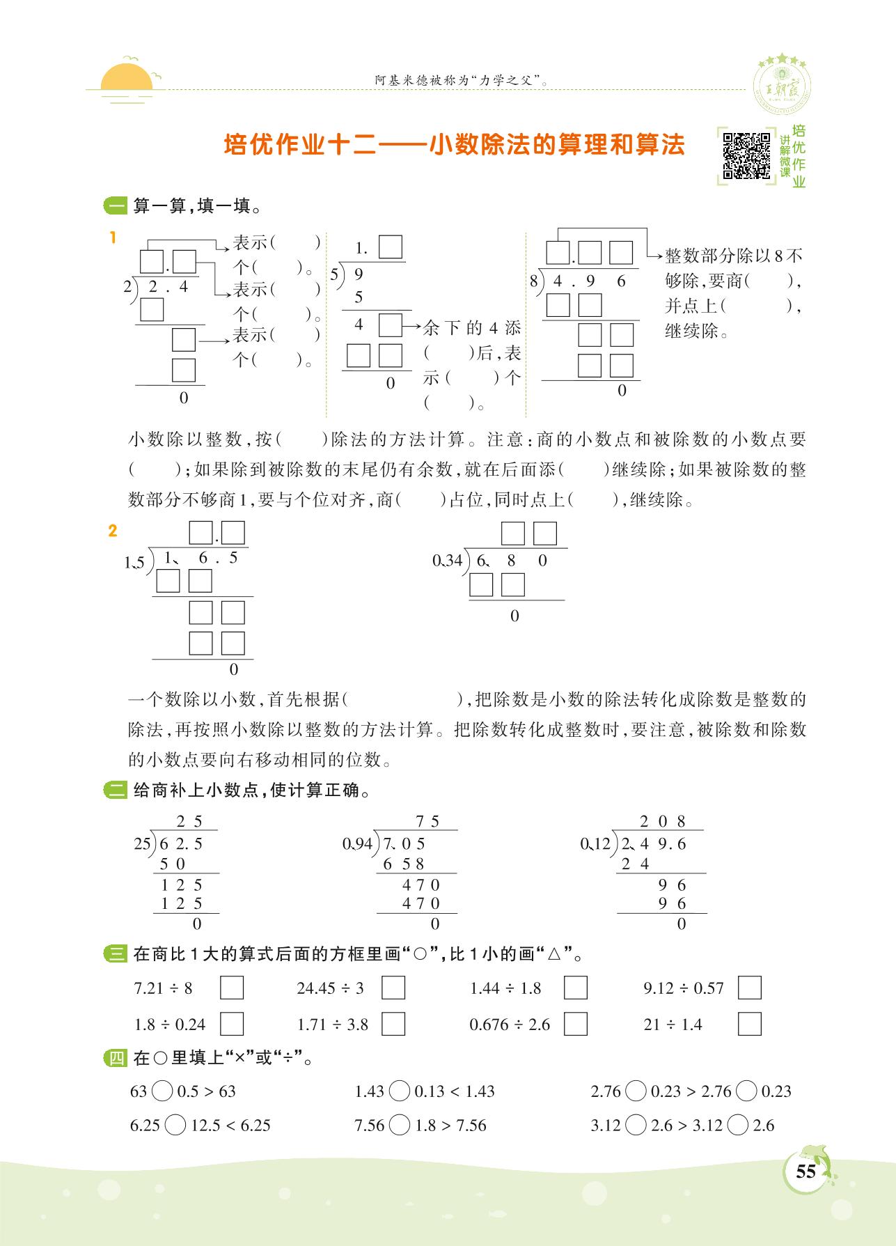 2021上册五年级数学苏教版 第五单元——培优作业十二 小数除法的算理和算法