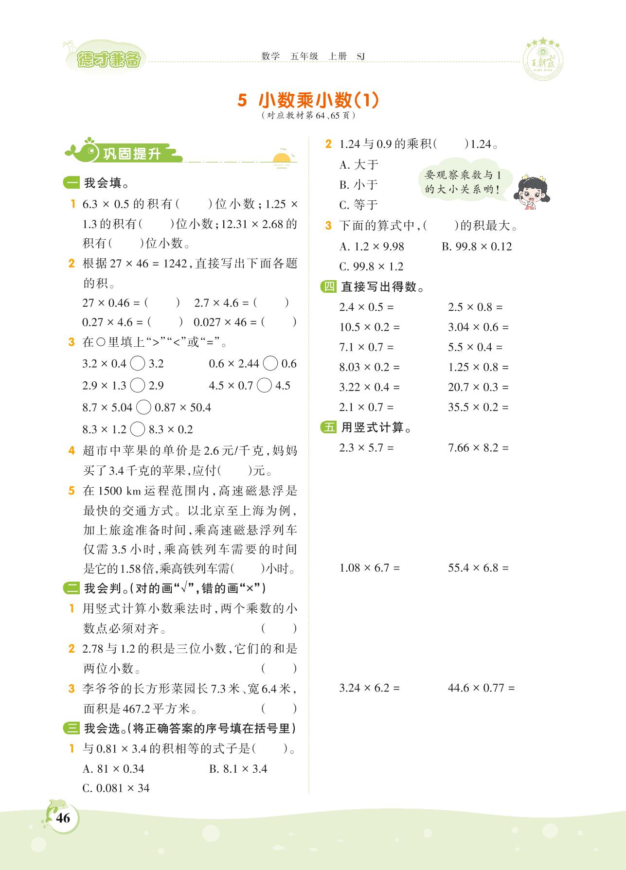 2021上册五年级数学苏教版 第五单元——5 小数乘小数(1)