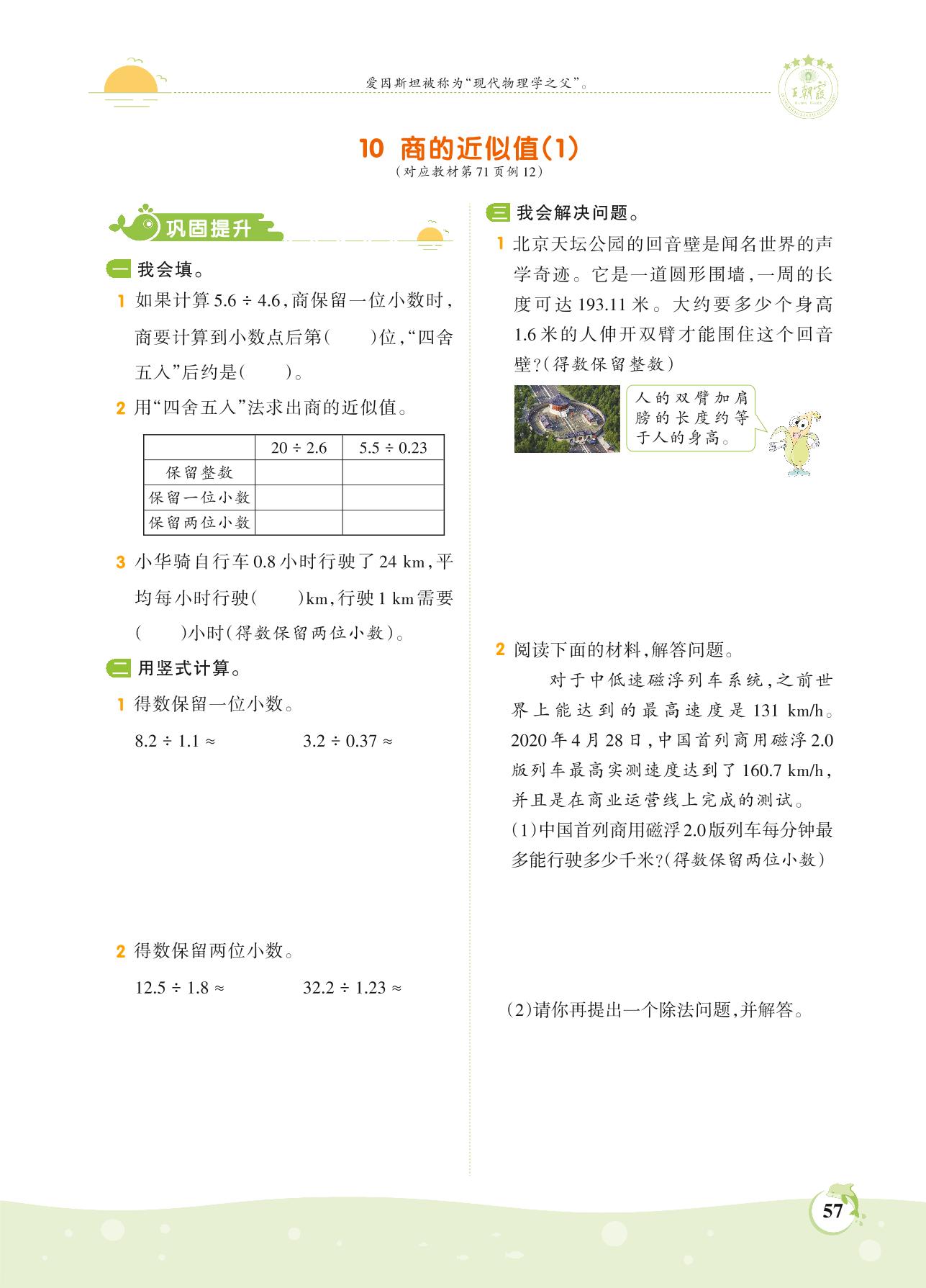 2021上册五年级数学苏教版 第五单元——10 商的近似值(1)