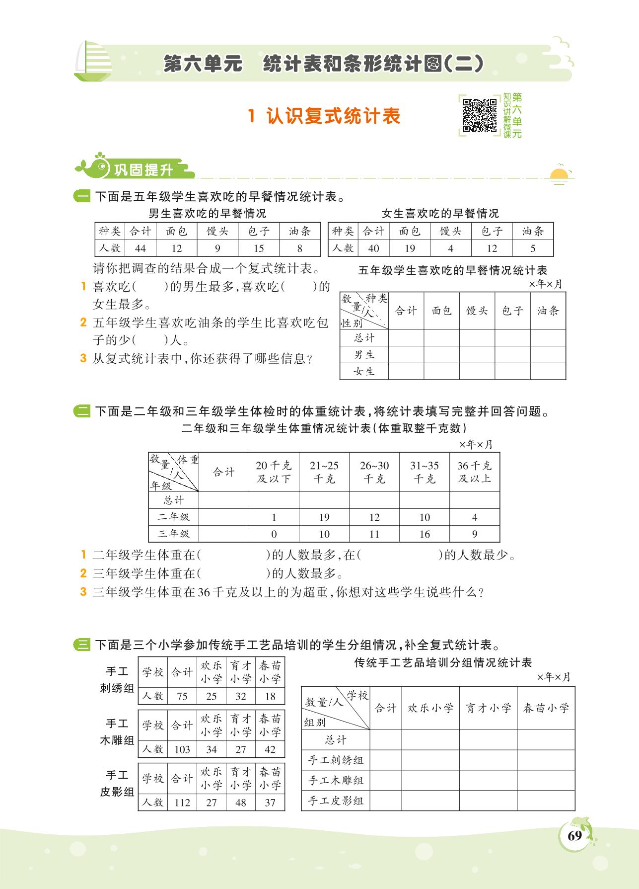 2021上册五年级数学苏教版 第六单元——1 认识复式统计表