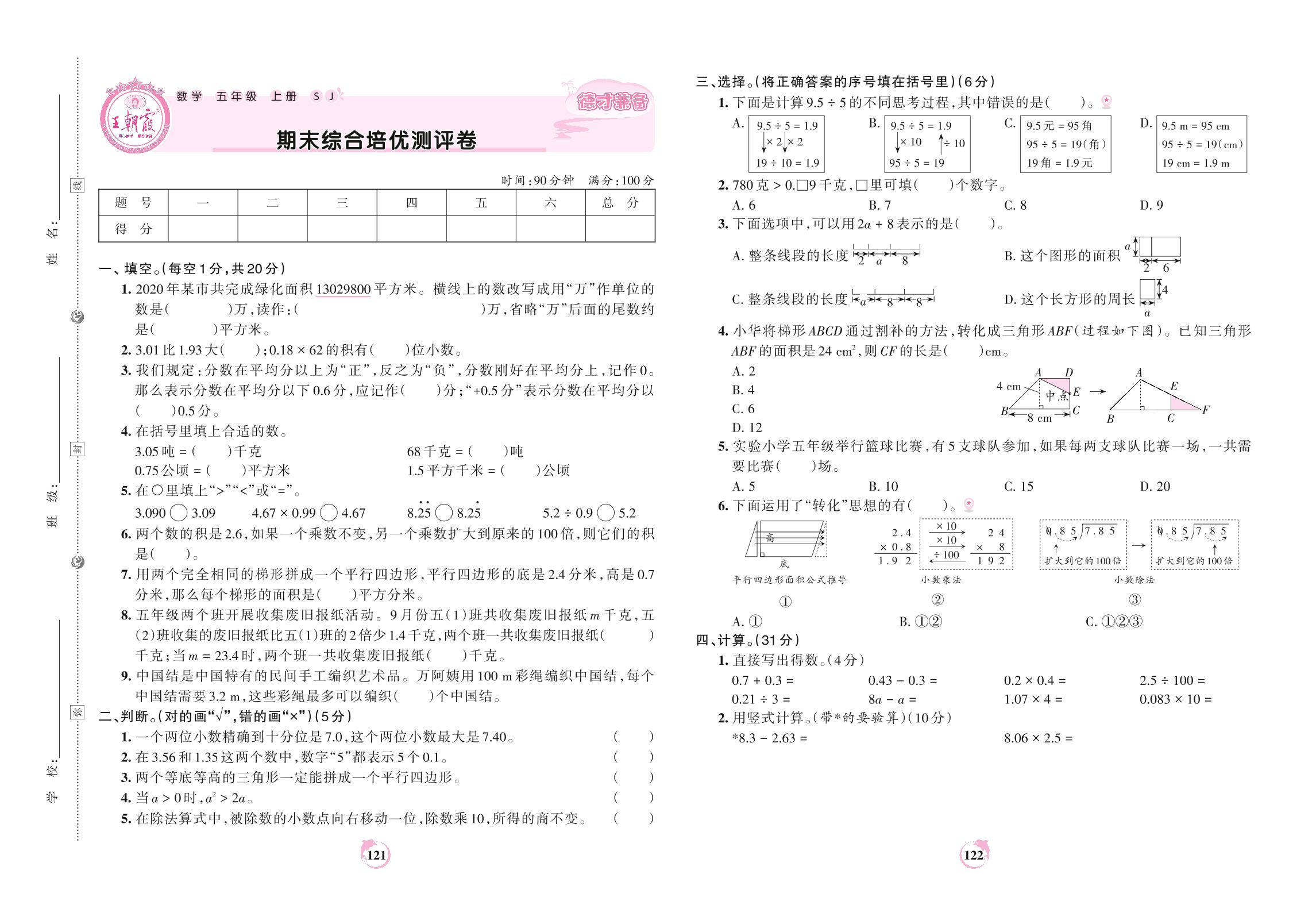 2021上册五年级数学苏教版 期末综合培优测评卷