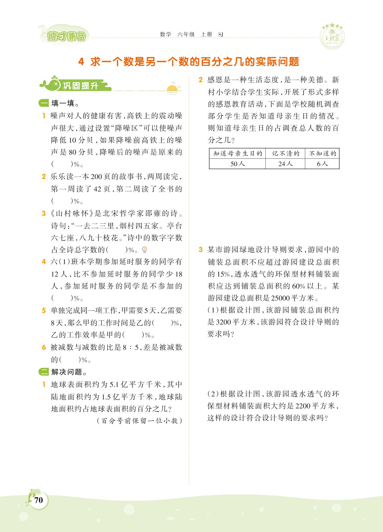 2021上册六年级数学苏教版 第六单元——4 求一个数是另一个数的百分之几的实际问题