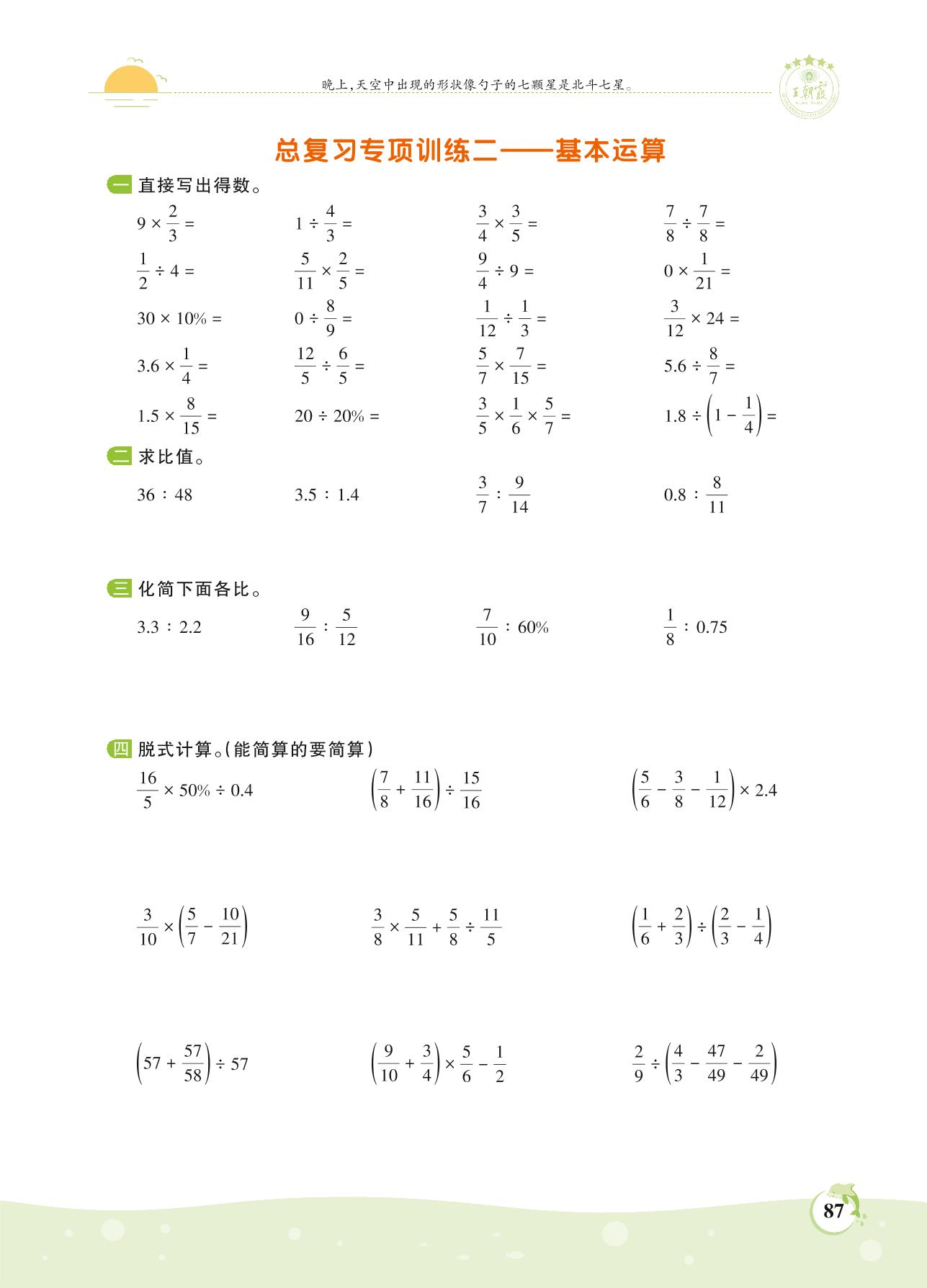 2021上册六年级数学苏教版 第七单元——基本运算