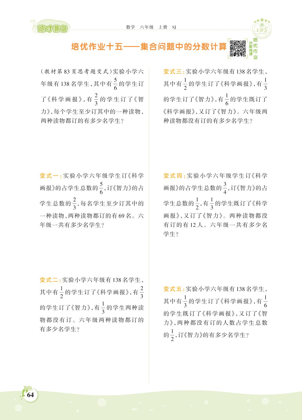 2021上册六年级数学苏教版 第五单元——培优作业十五 集合问题中的分数计算