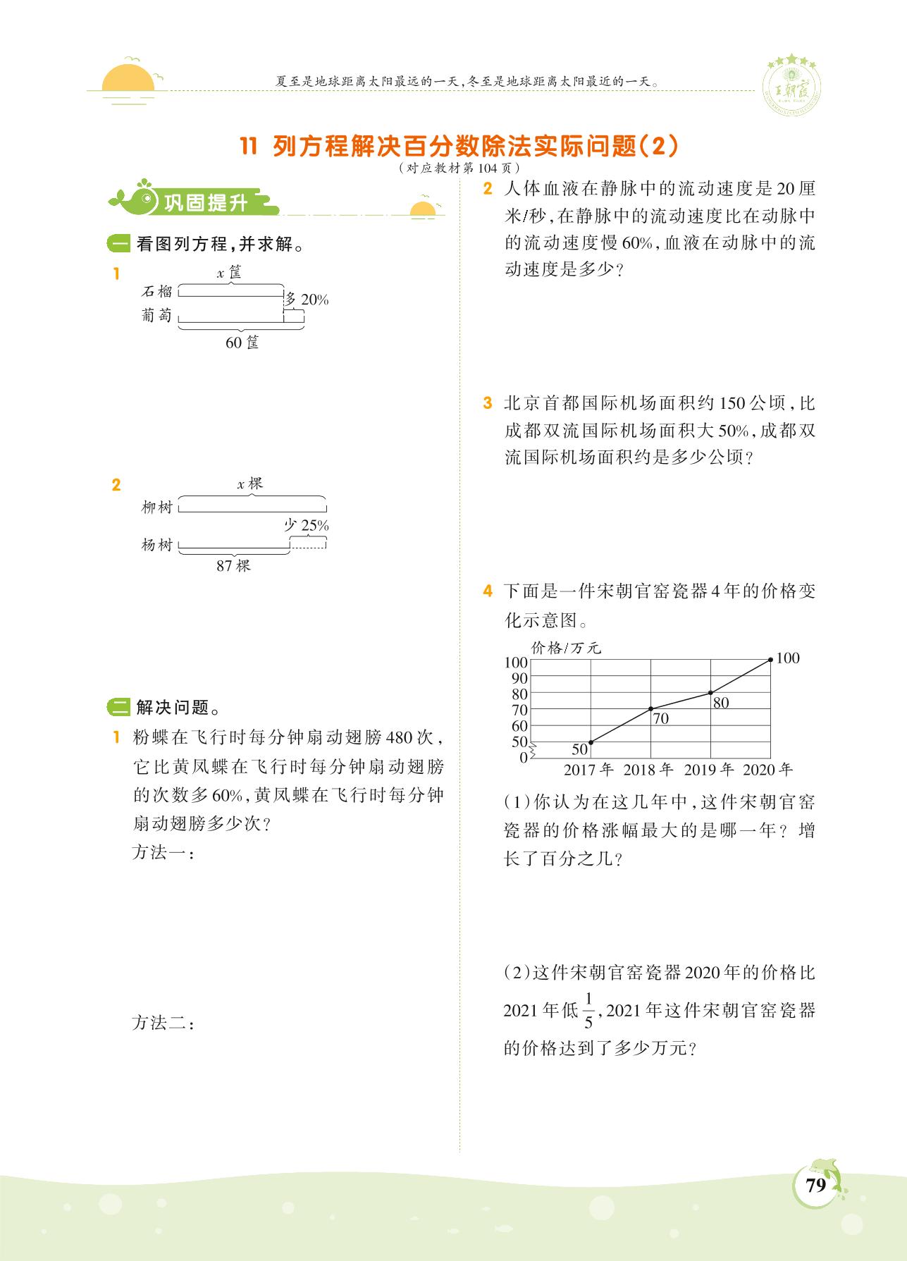2021上册六年级数学苏教版 第六单元——11 列方程解决百分数除法实际问题(2)
