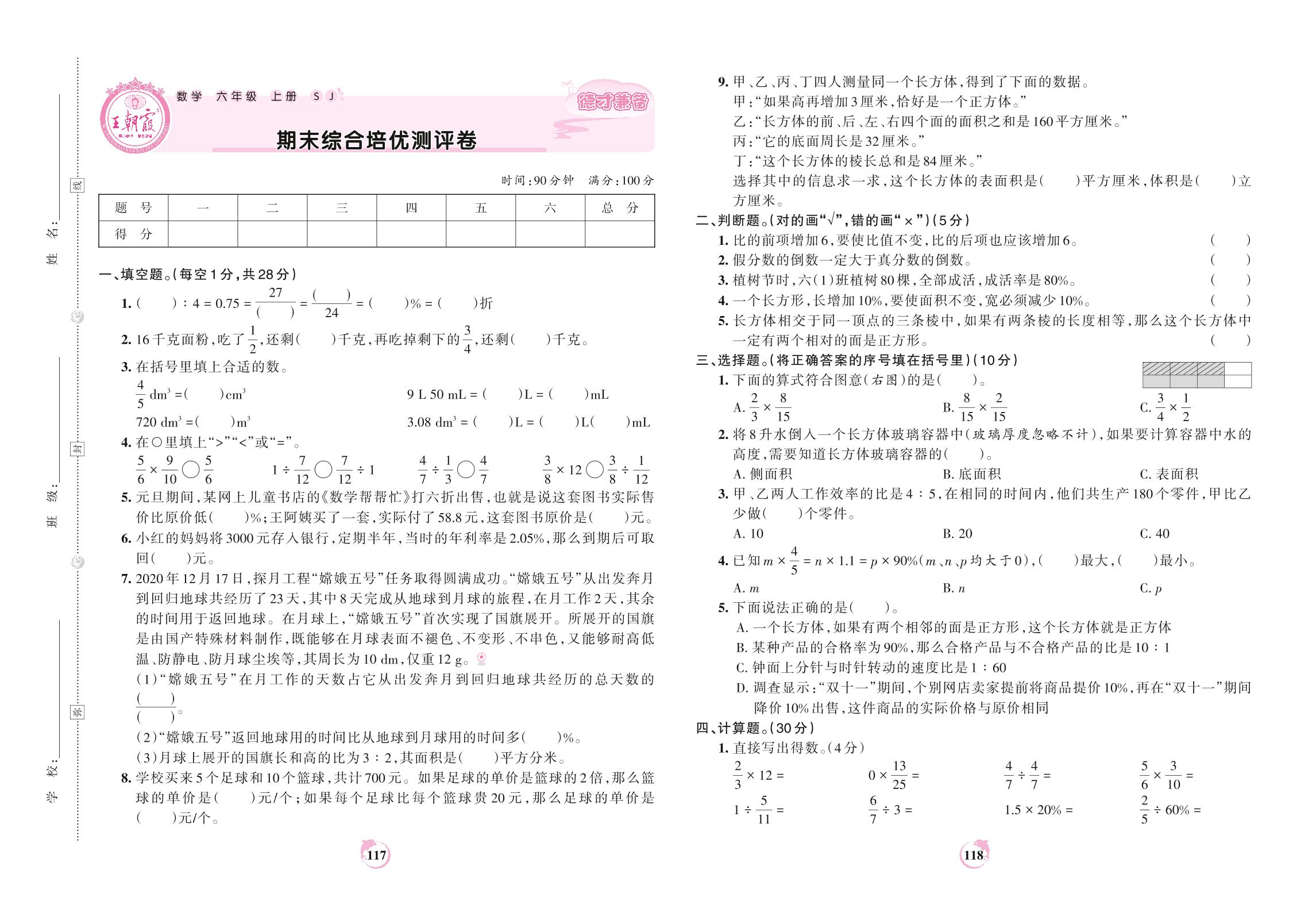 2021上册六年级数学苏教版 期末综合培优测评卷