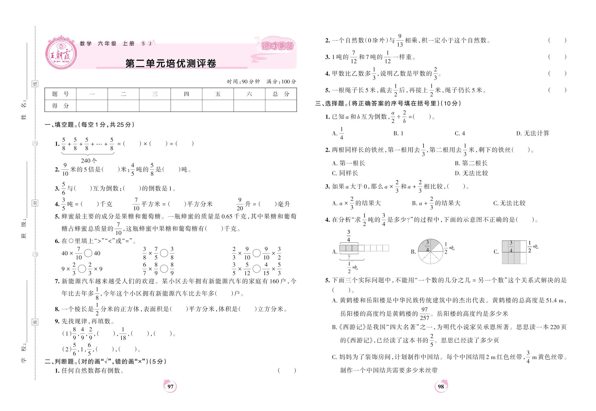 2021上册六年级数学苏教版 第二单元培优测评卷