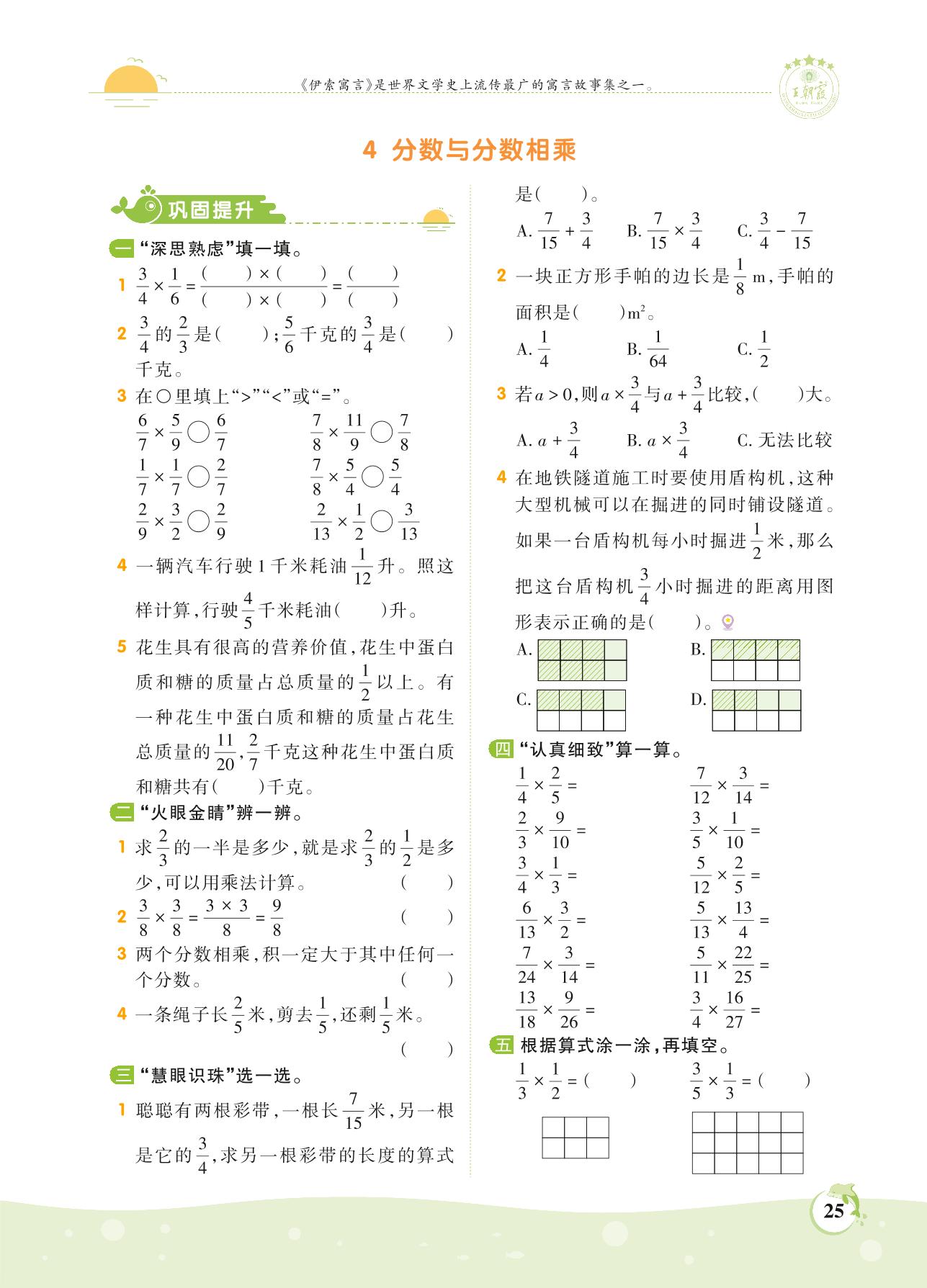 2021上册六年级数学苏教版 第二单元——4 分数与分数相乘