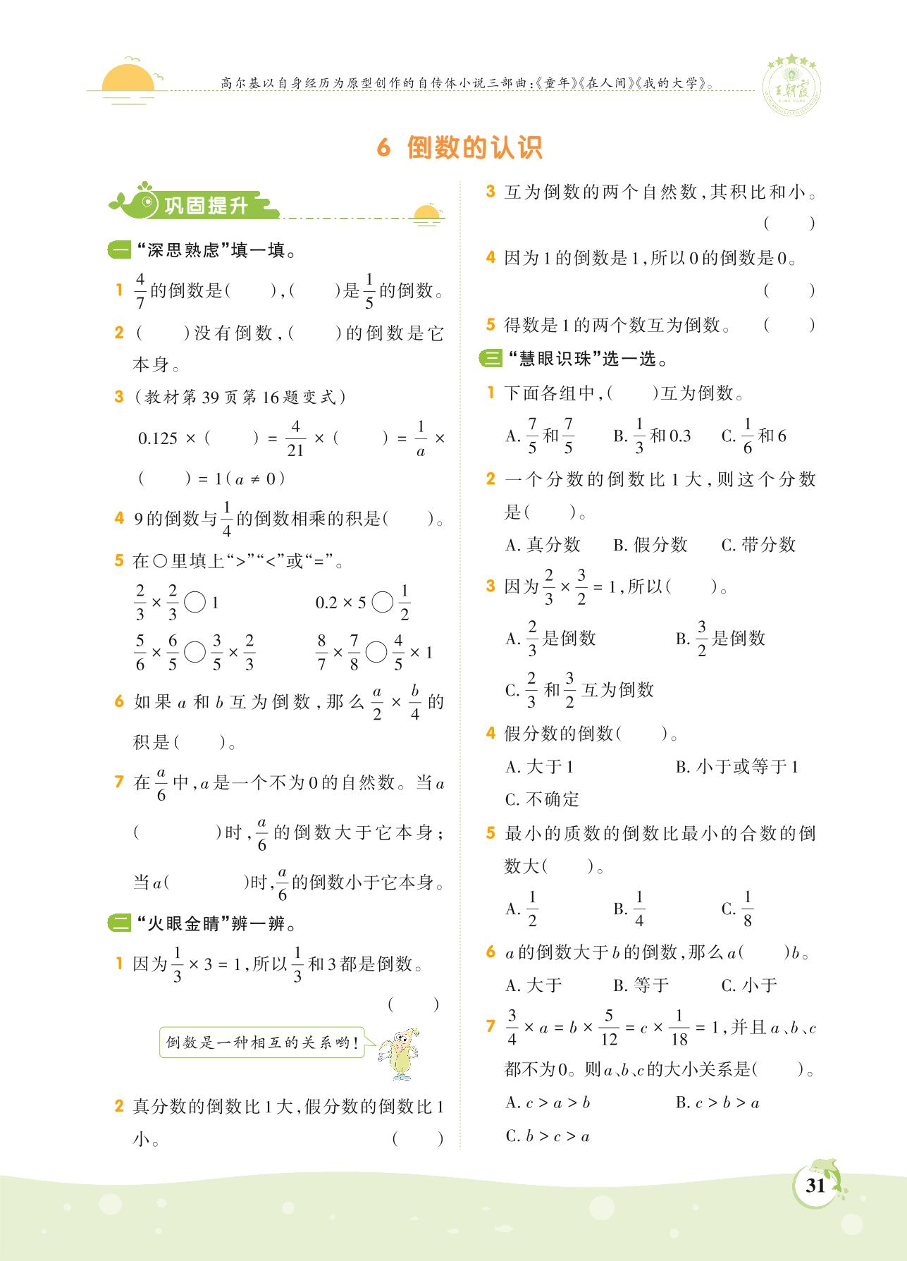 2021上册六年级数学苏教版 第二单元——6 倒数的认识