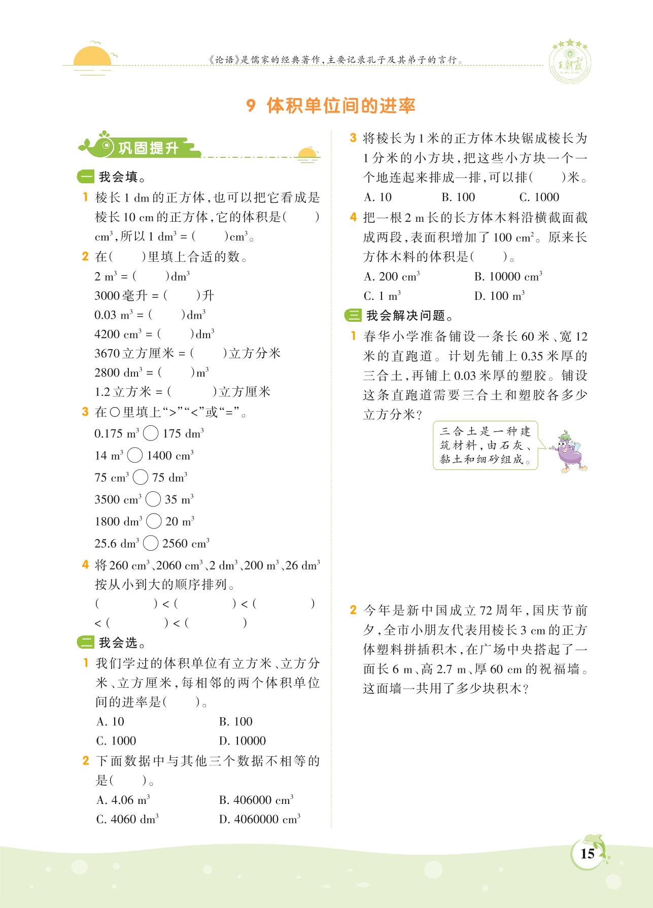 2021上册六年级数学苏教版 第一单元——9 体积单位间的进率