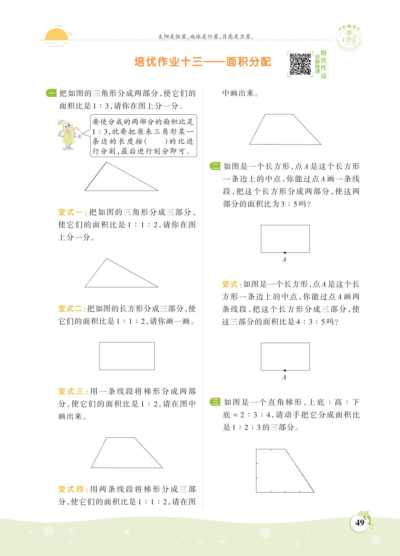2021上册六年级数学苏教版 第三单元——培优作业十三 面积分配