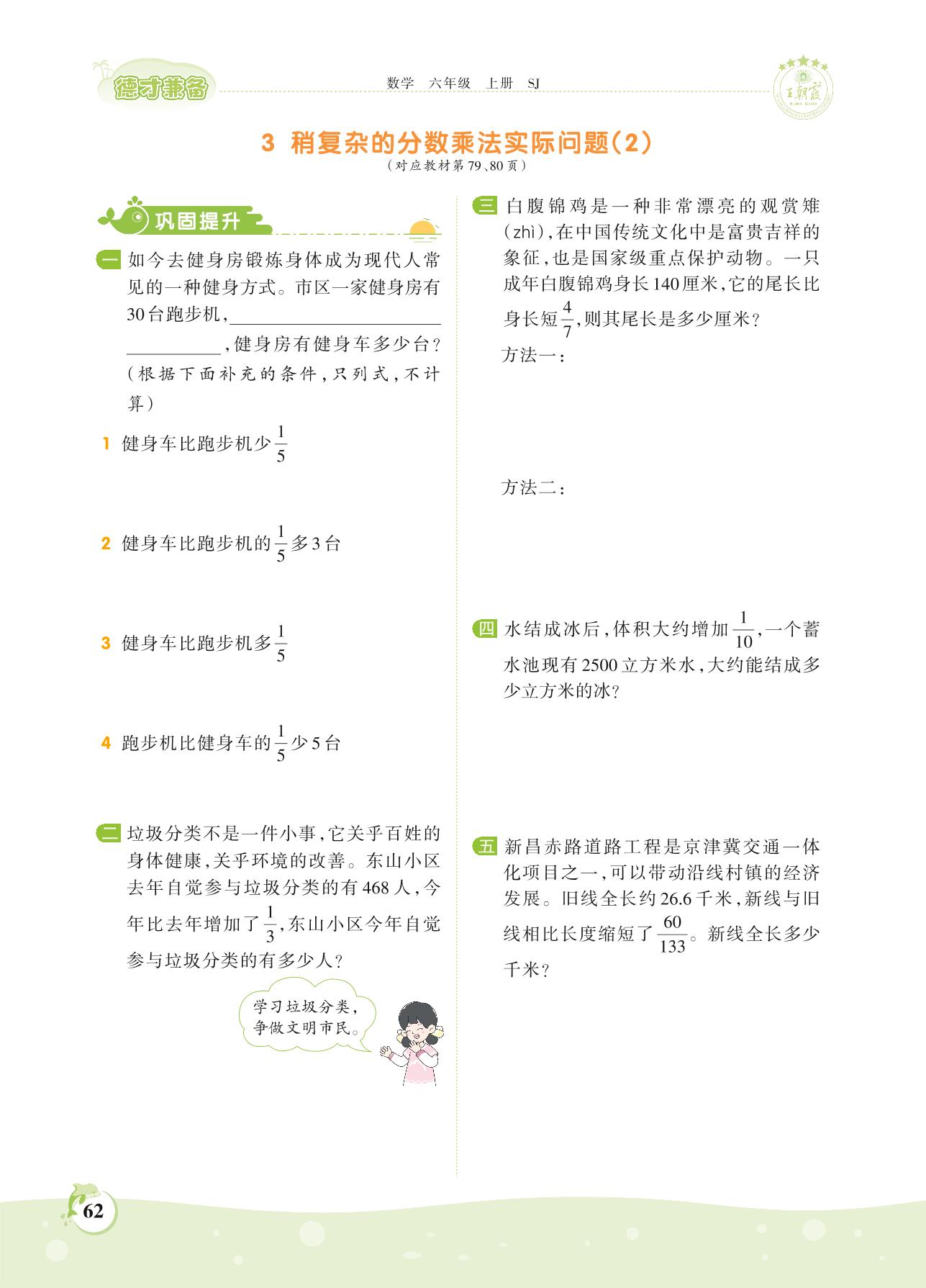 2021上册六年级数学苏教版 第五单元——3 稍复杂的分数乘法实际问题(2)