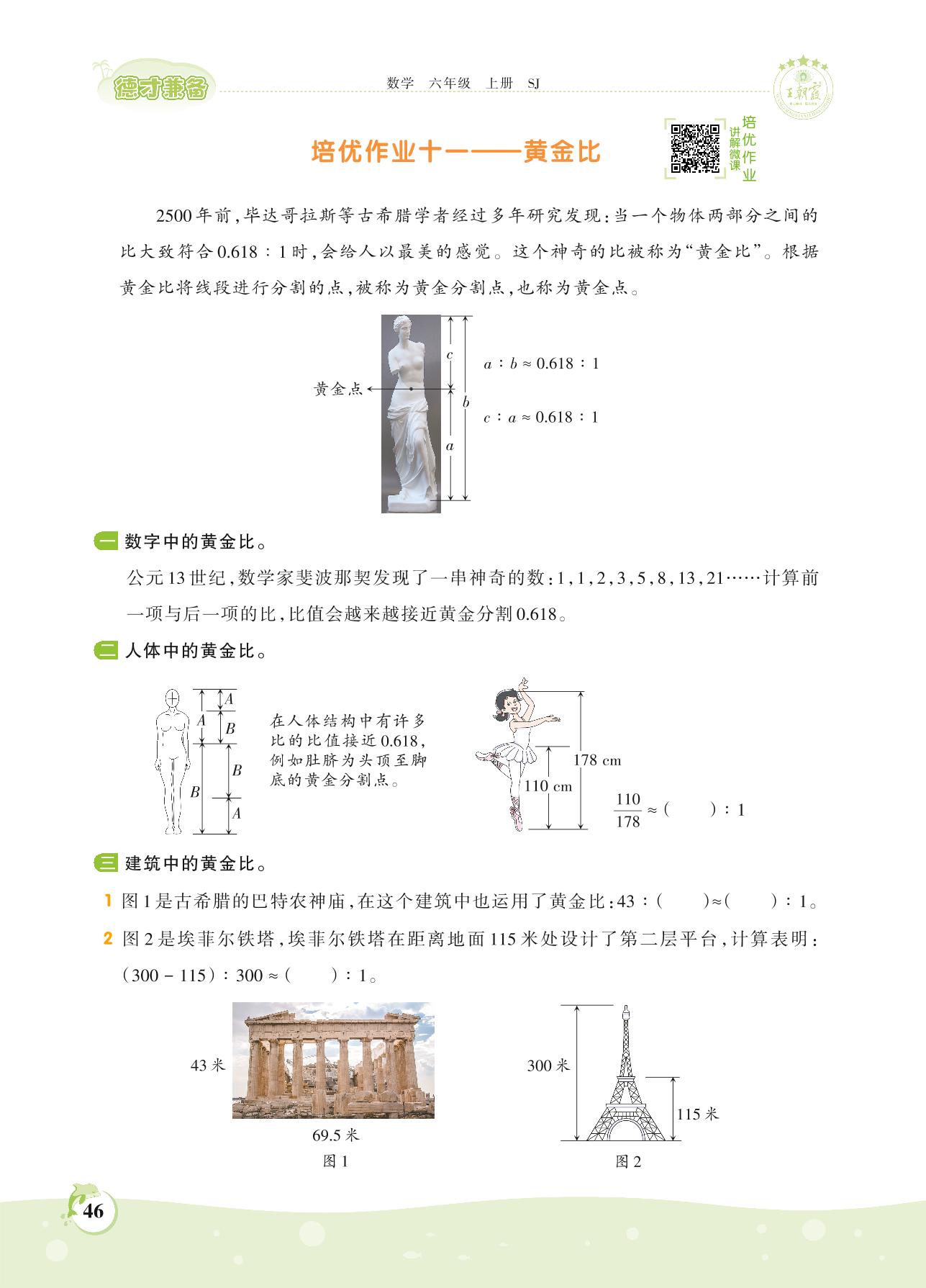 2021上册六年级数学苏教版 第三单元——培优作业十一 黄金比