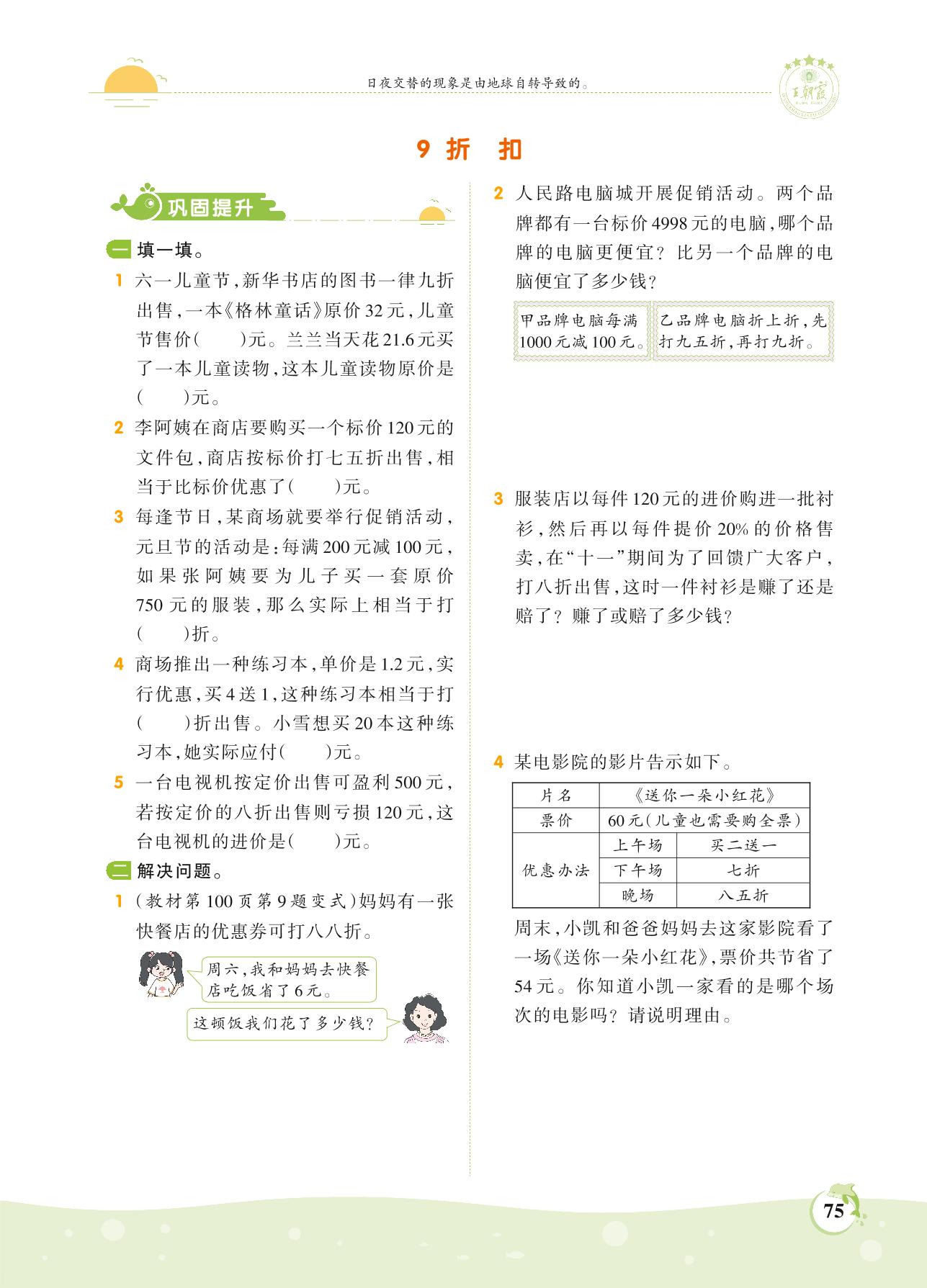 2021上册六年级数学苏教版 第六单元——9 折扣