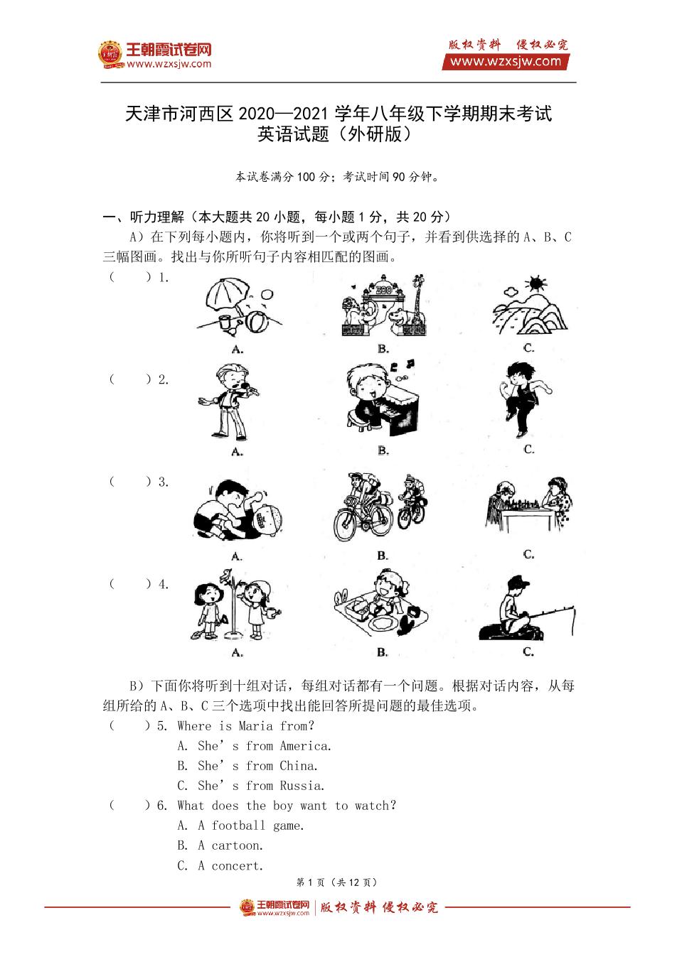 天津市河西区2020—2021学年八年级下学期期末考试英语试题(外研版)