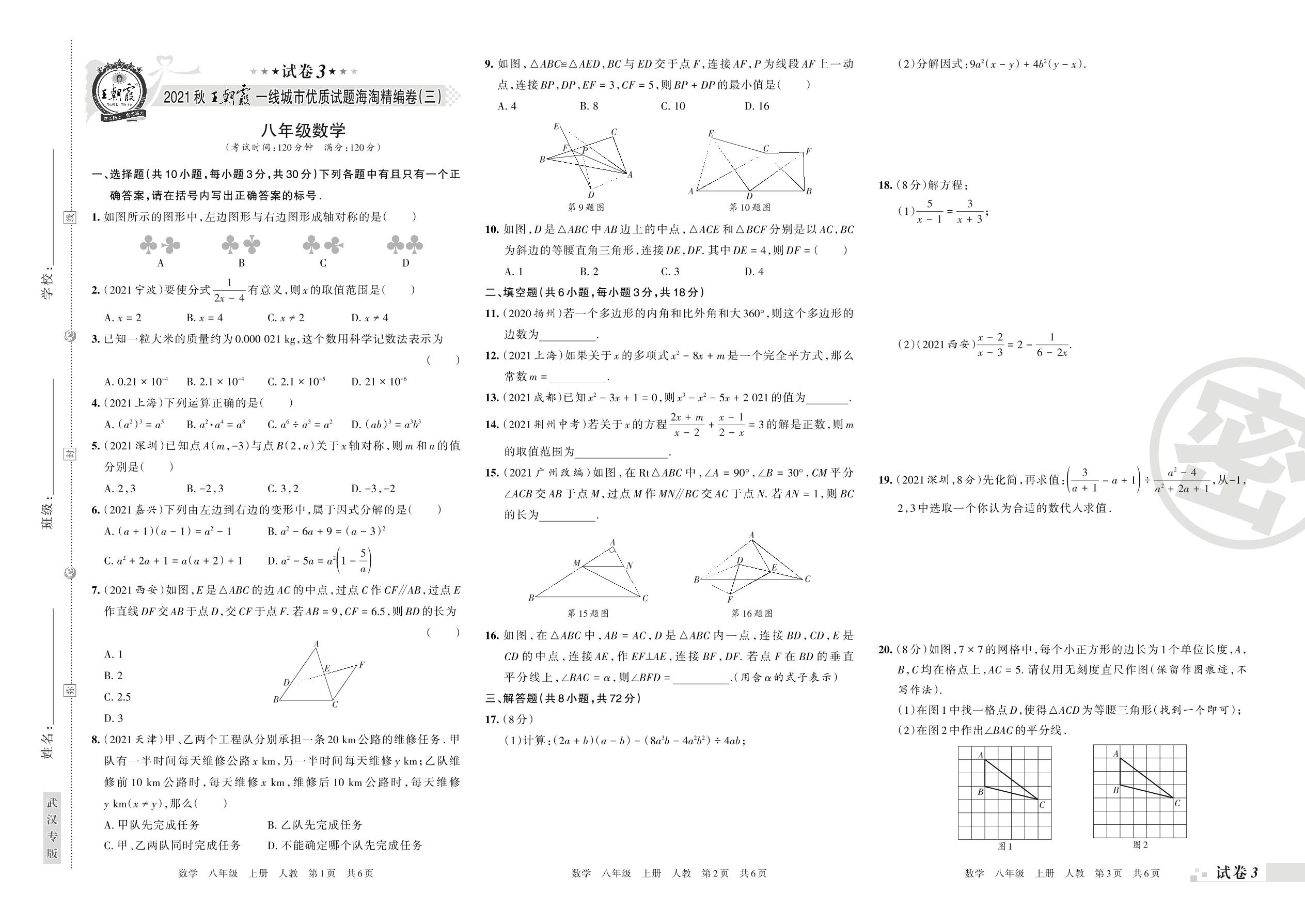 2021秋王朝霞一线城市优质试题海淘精编卷(三)八年级上册数学(人教版)【3】